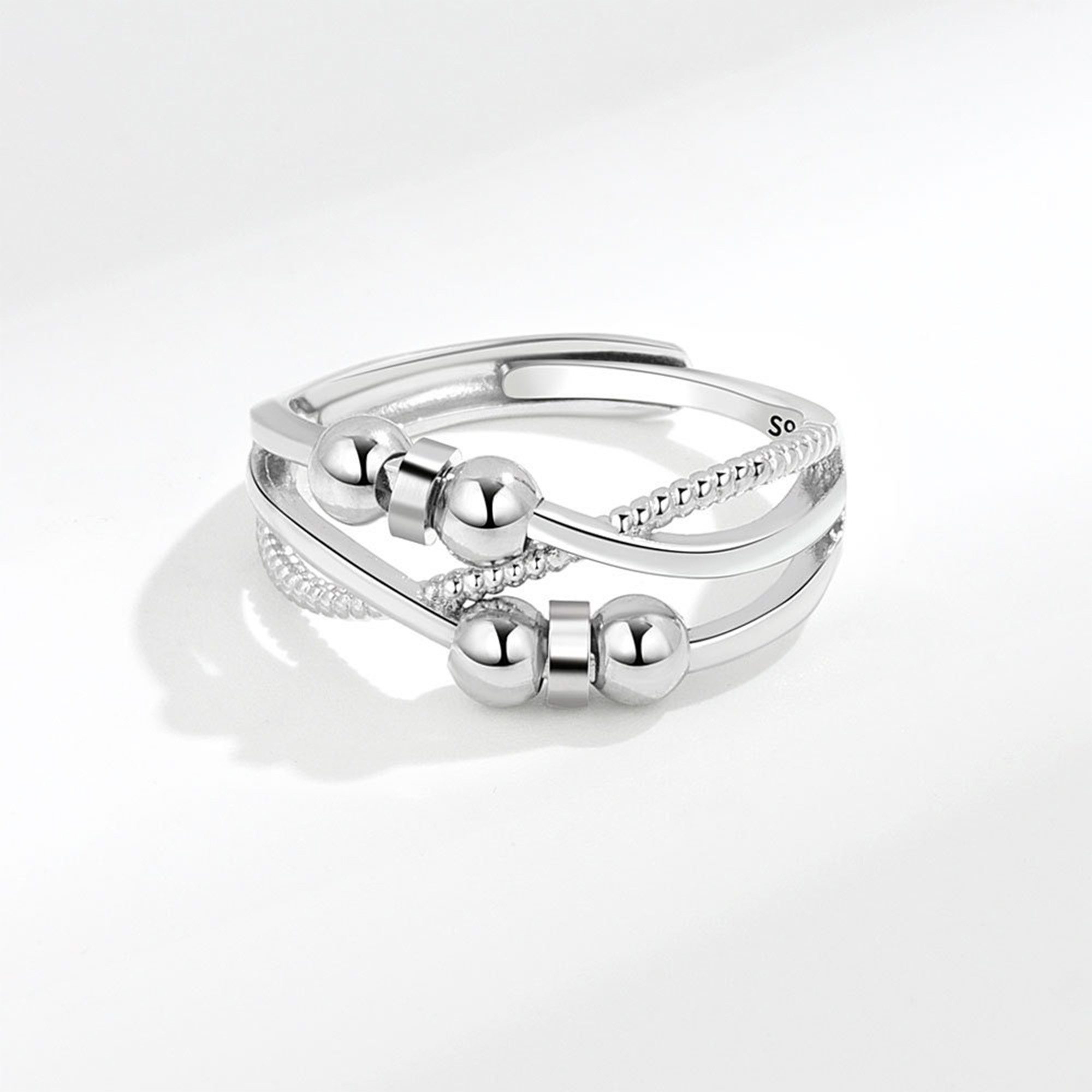 Pretty and Classy - This is an anti-anxiety ring with 4 mini beads strung together to form one fidget ring that can be turned freely. The beads are intertwined with the ring, which is simple and elegant. This anti-anxiety ring spins very smoothly and is designed to satisfy anyone with the urge to fidget.