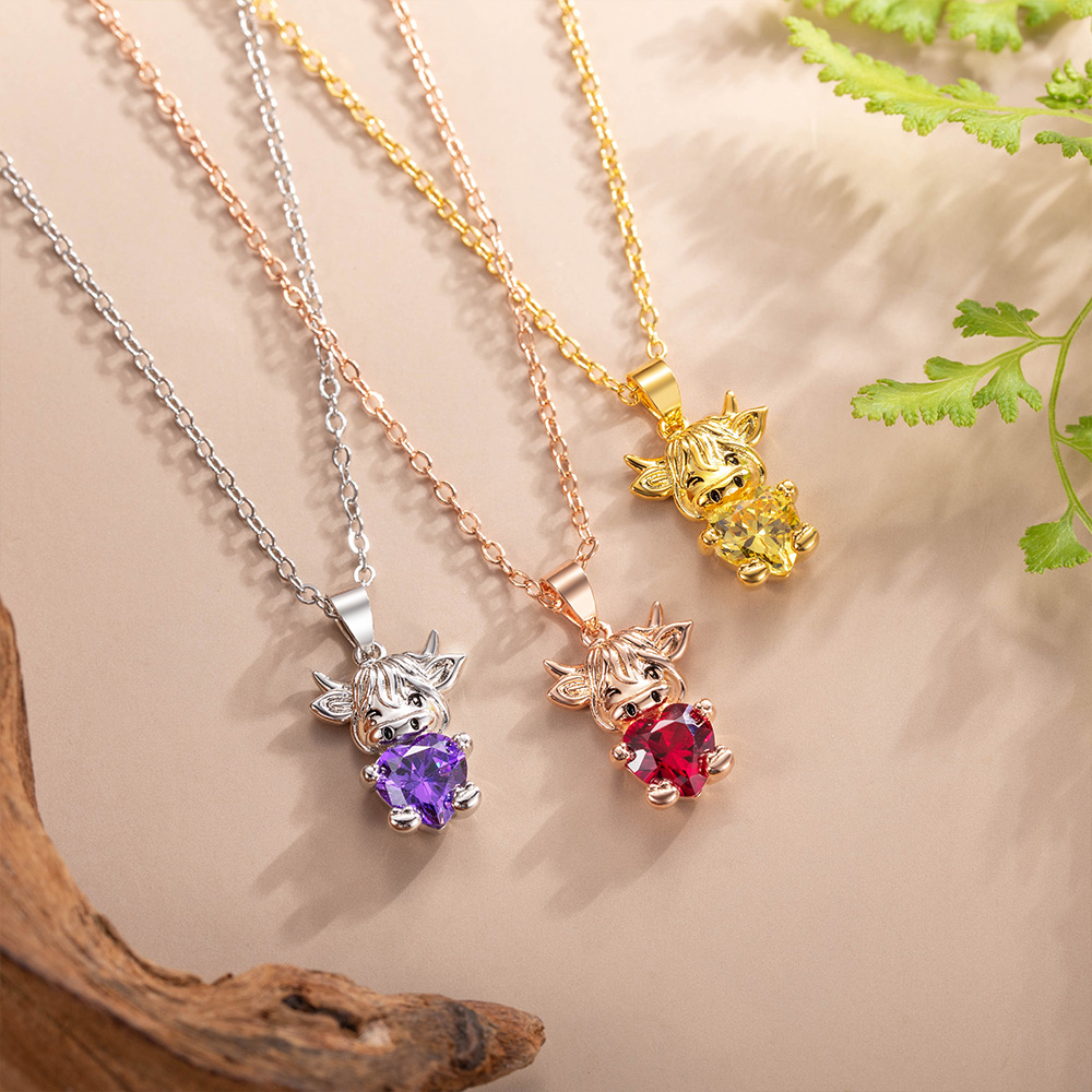 Custom Birthstone - This Highland Cow Necklace can be personalized with a birthstone of your choice, adding a special love and personal meaning to the necklace.