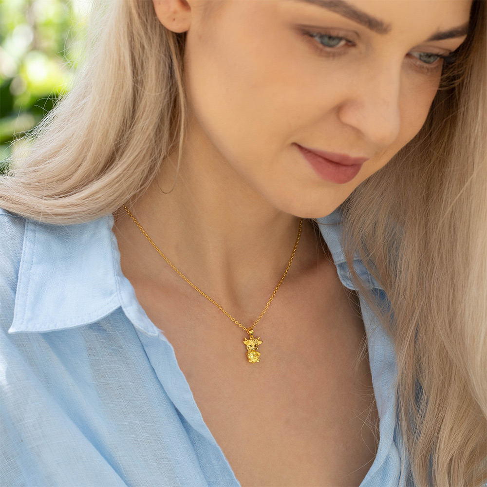 Cute Cow Design - The necklace features a charming Highland cow design, with its adorable golden hair and bangs covering its eyes. This cute and playful design adds a touch of whimsy to your style.