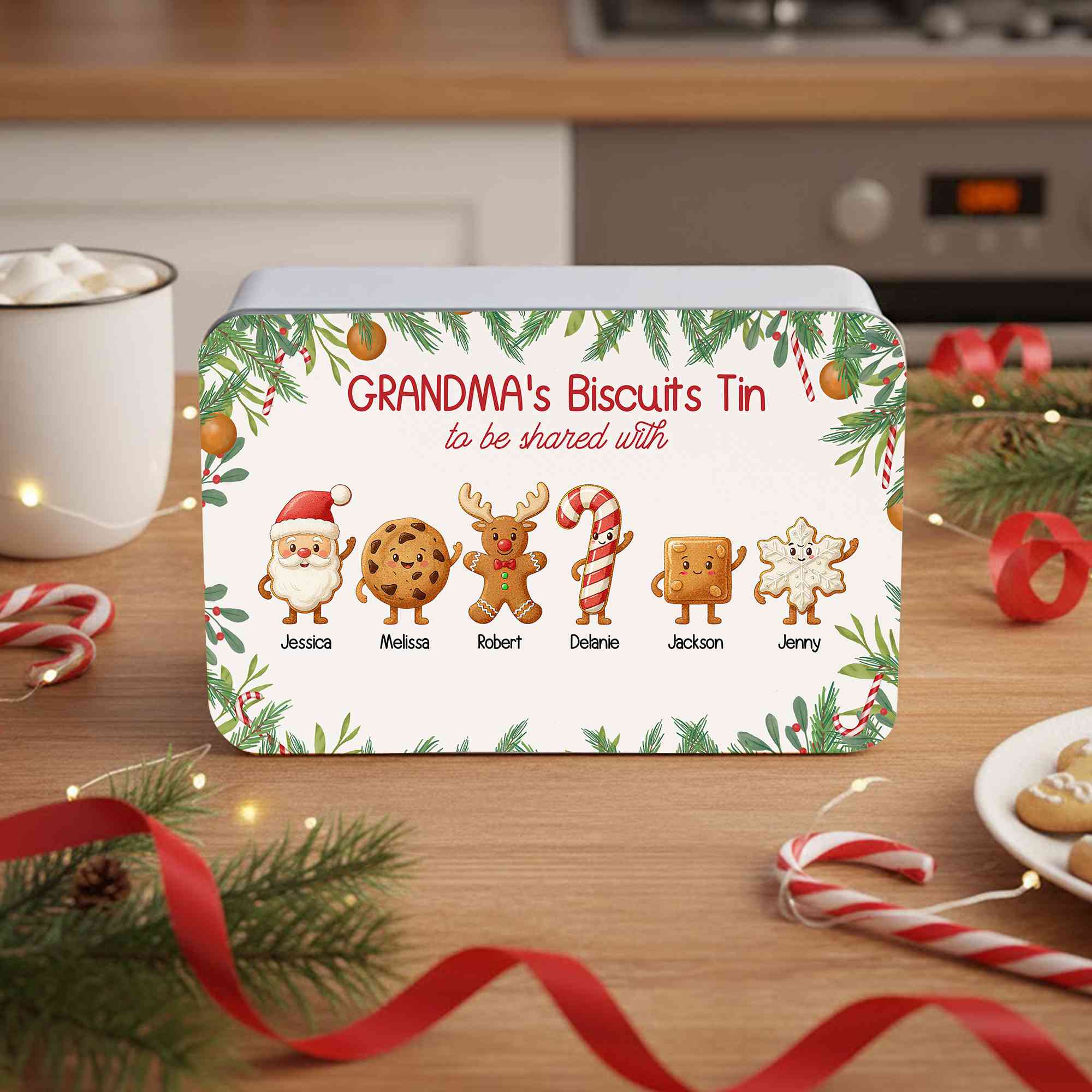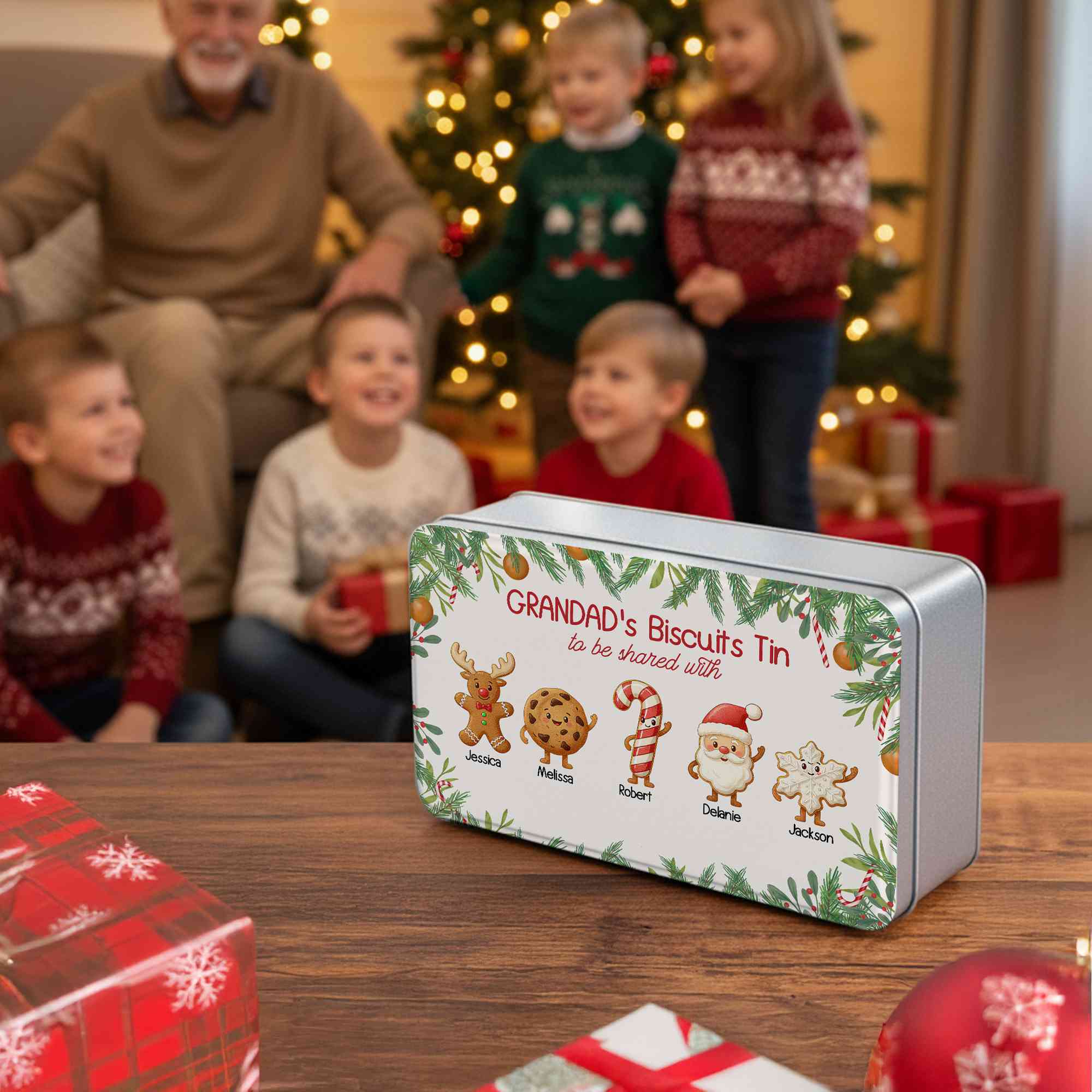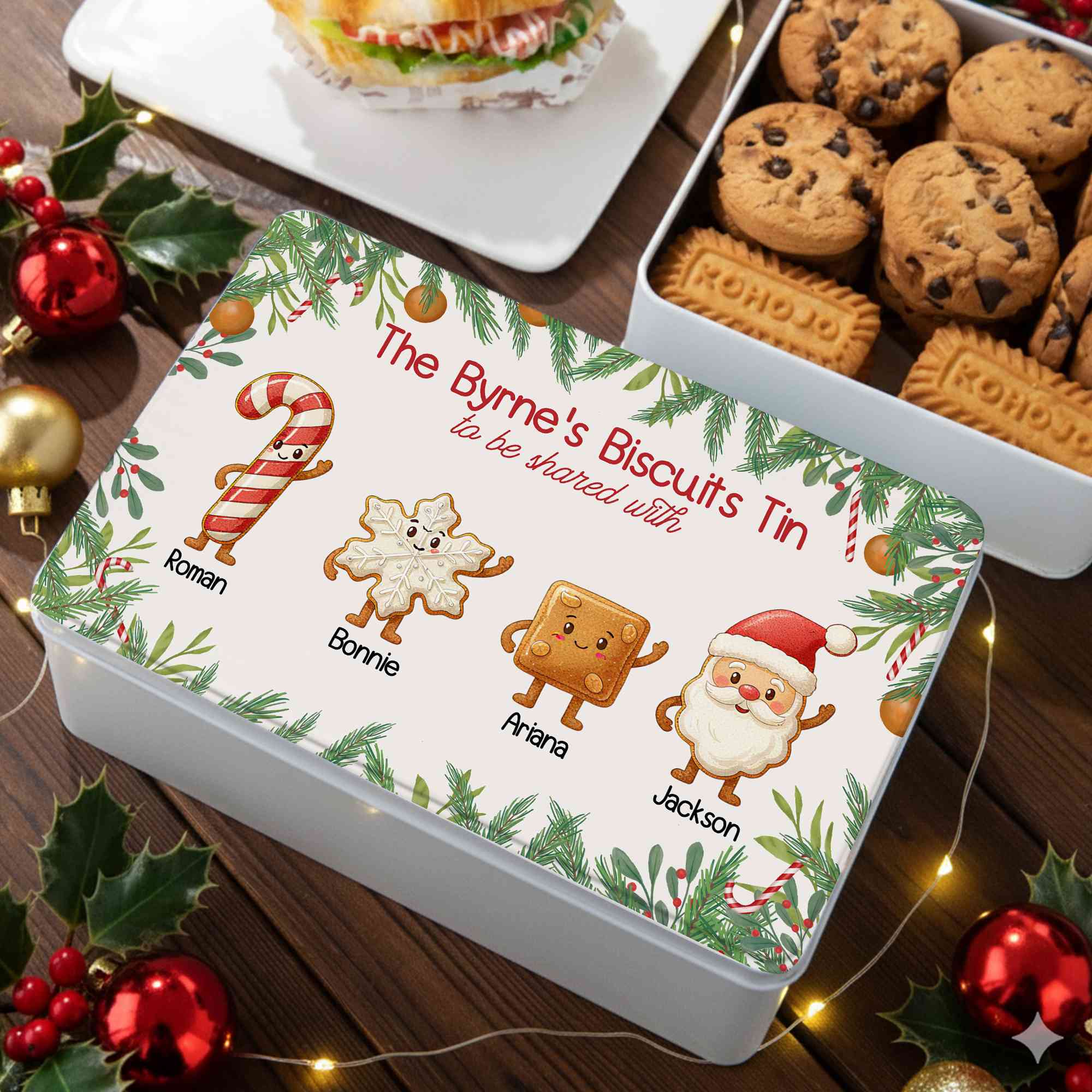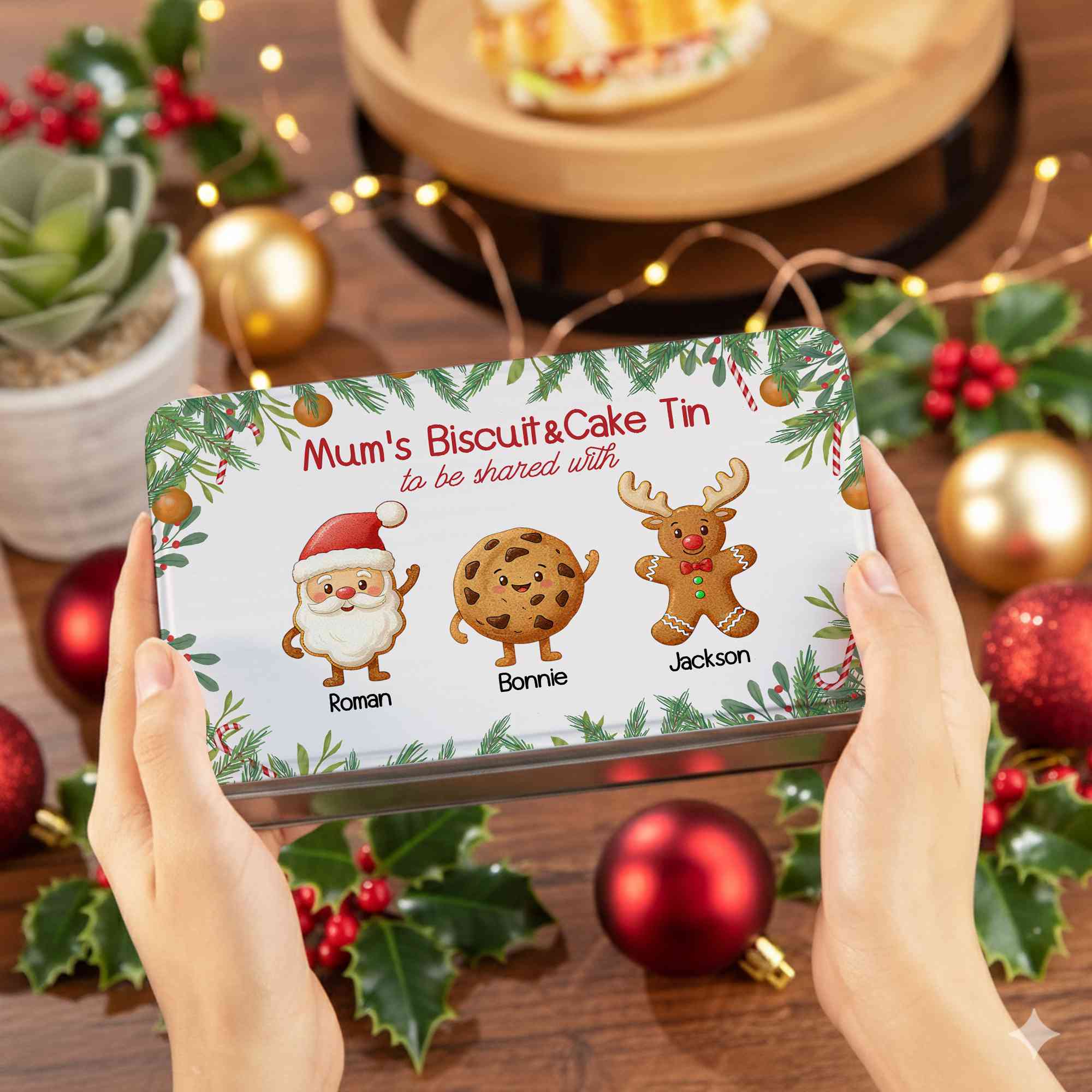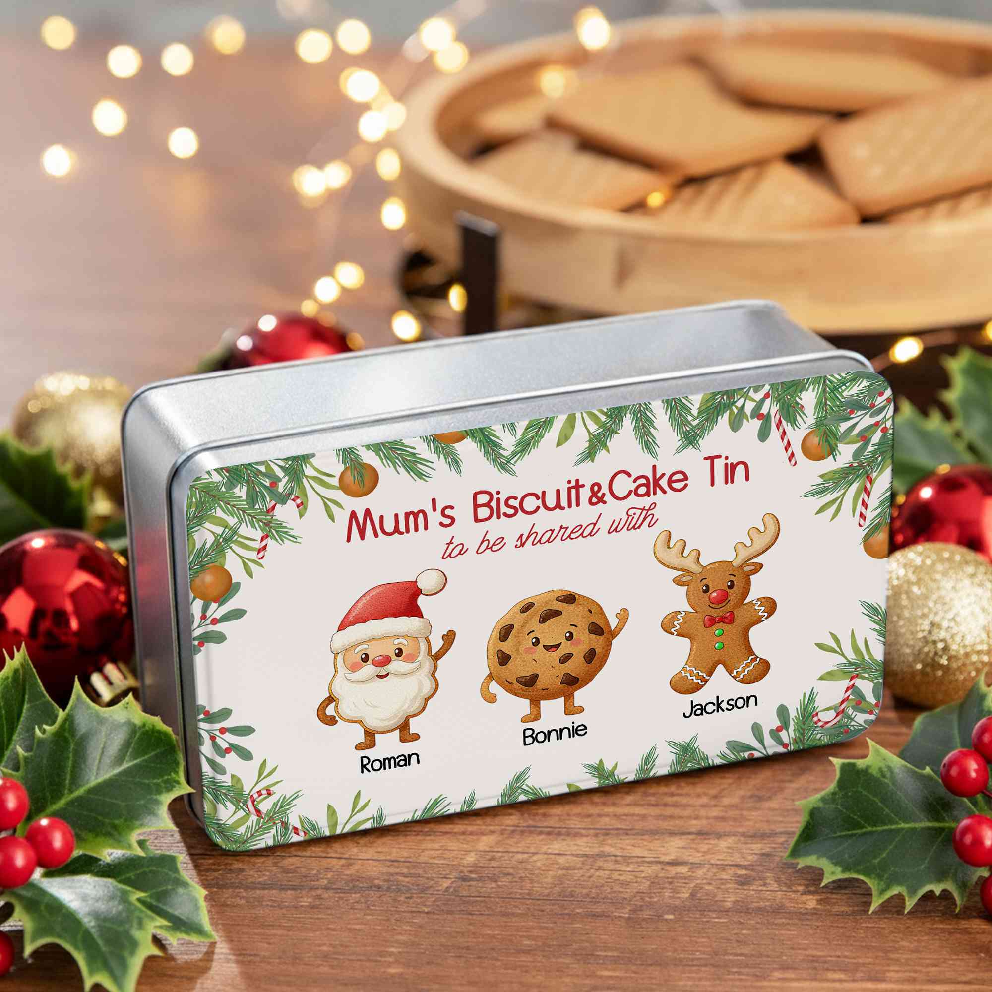 Custom Christmas Theme Cartoon Cookie Tin Box with Name, Reusable Biscuit Storage Box, Holiday Party Favor, Christmas/Birthday Gift for Family/Kids