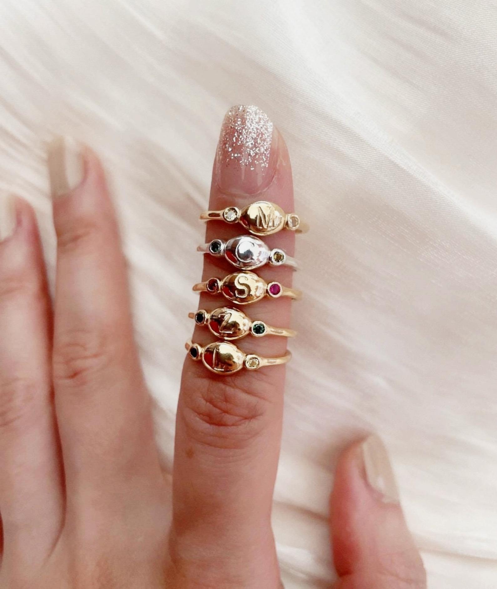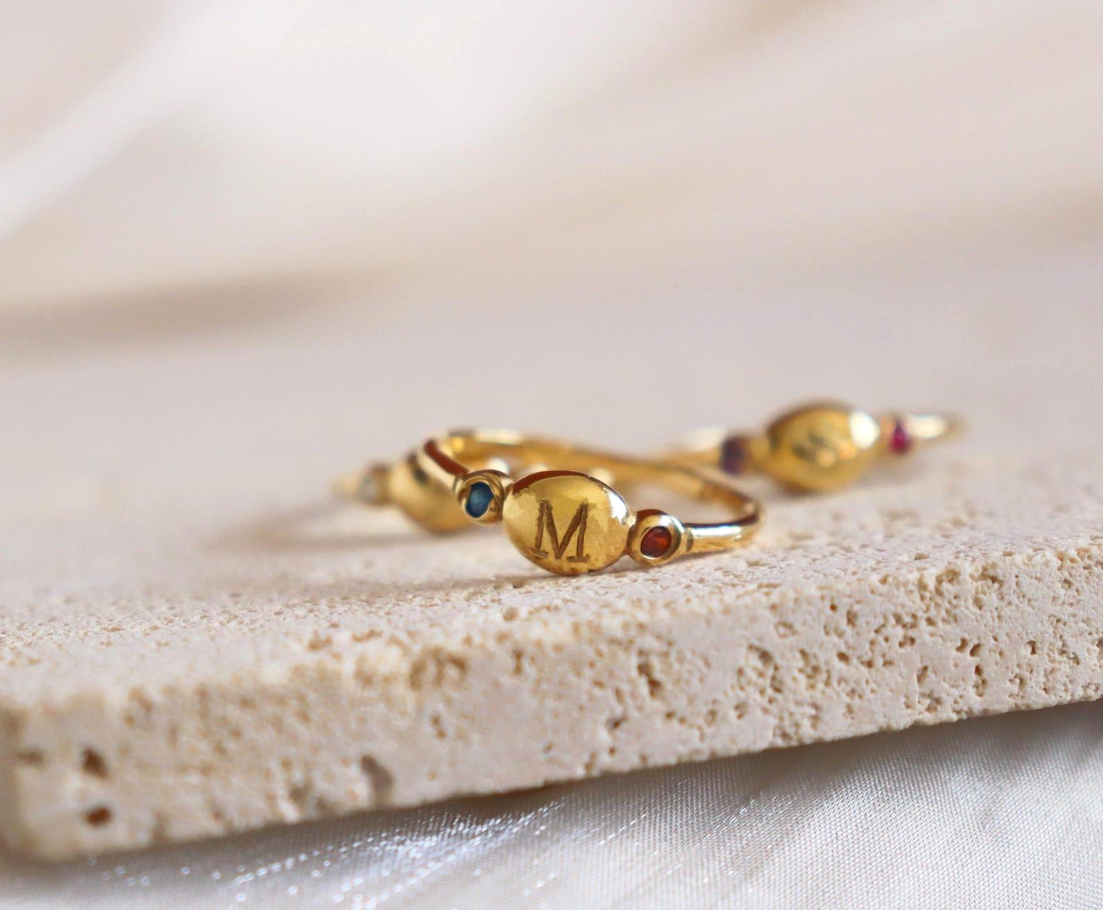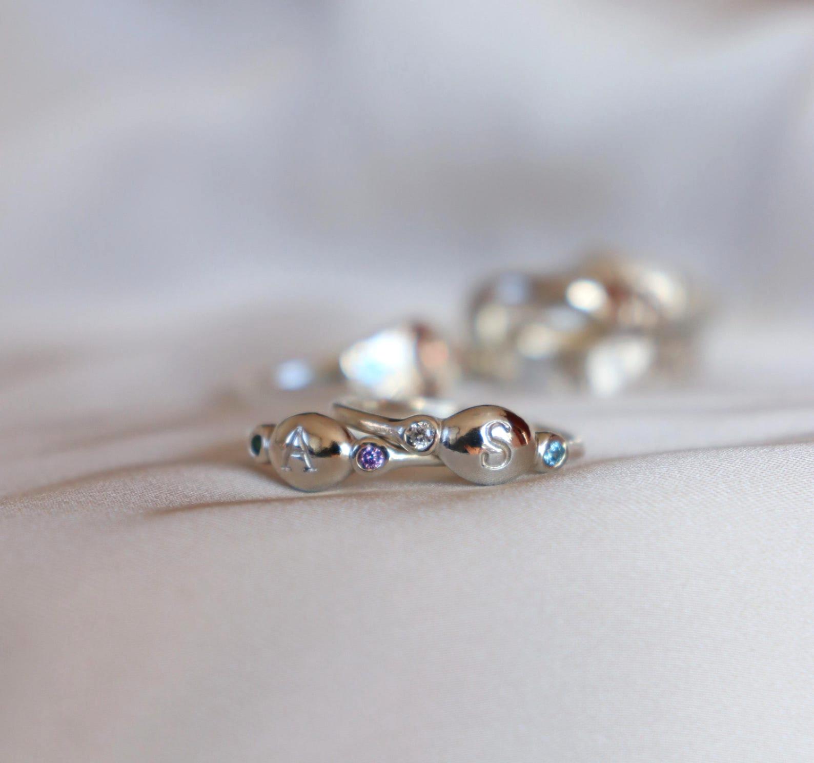 | Style | Custom Double Birthstone & Initial Bubble Ring |