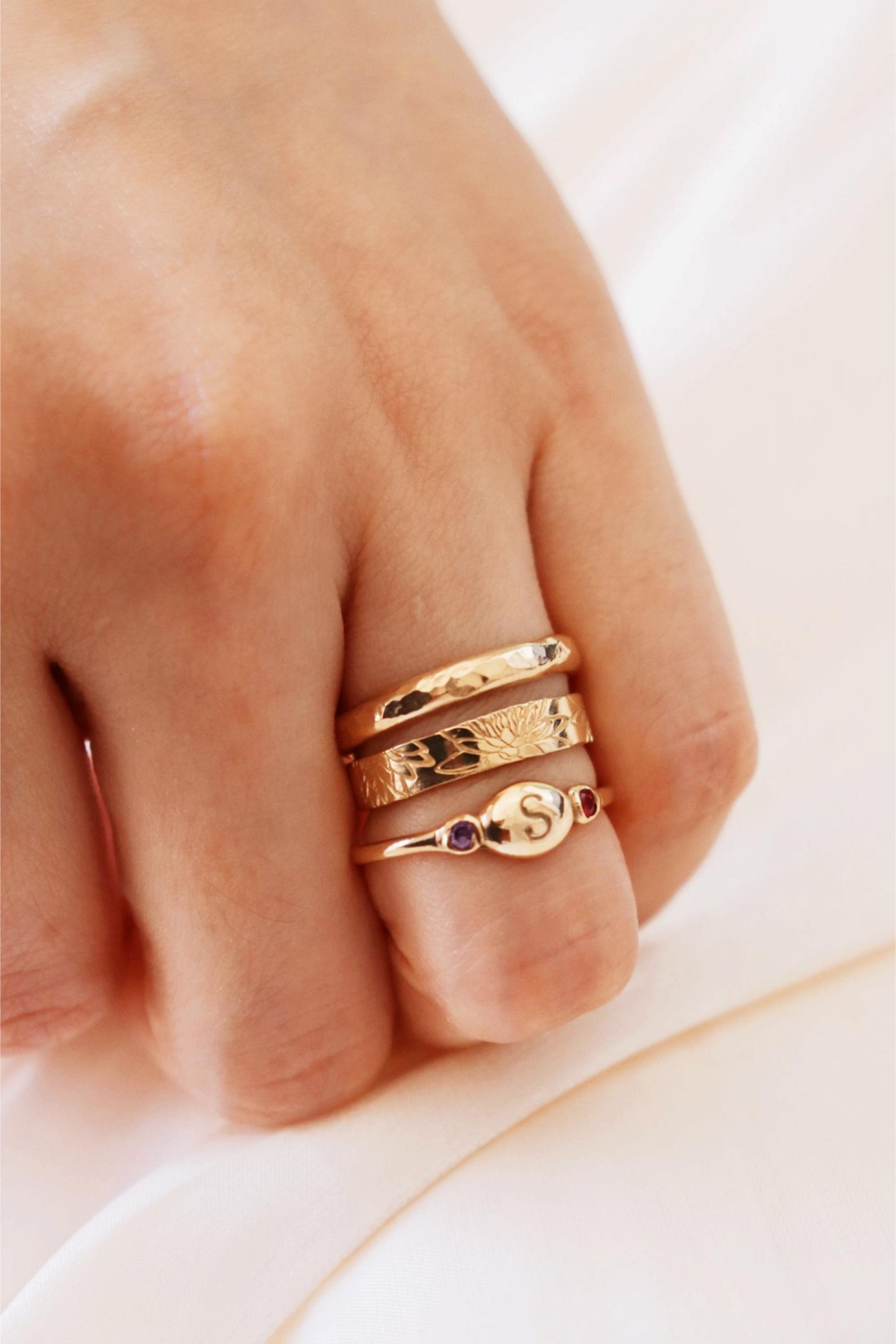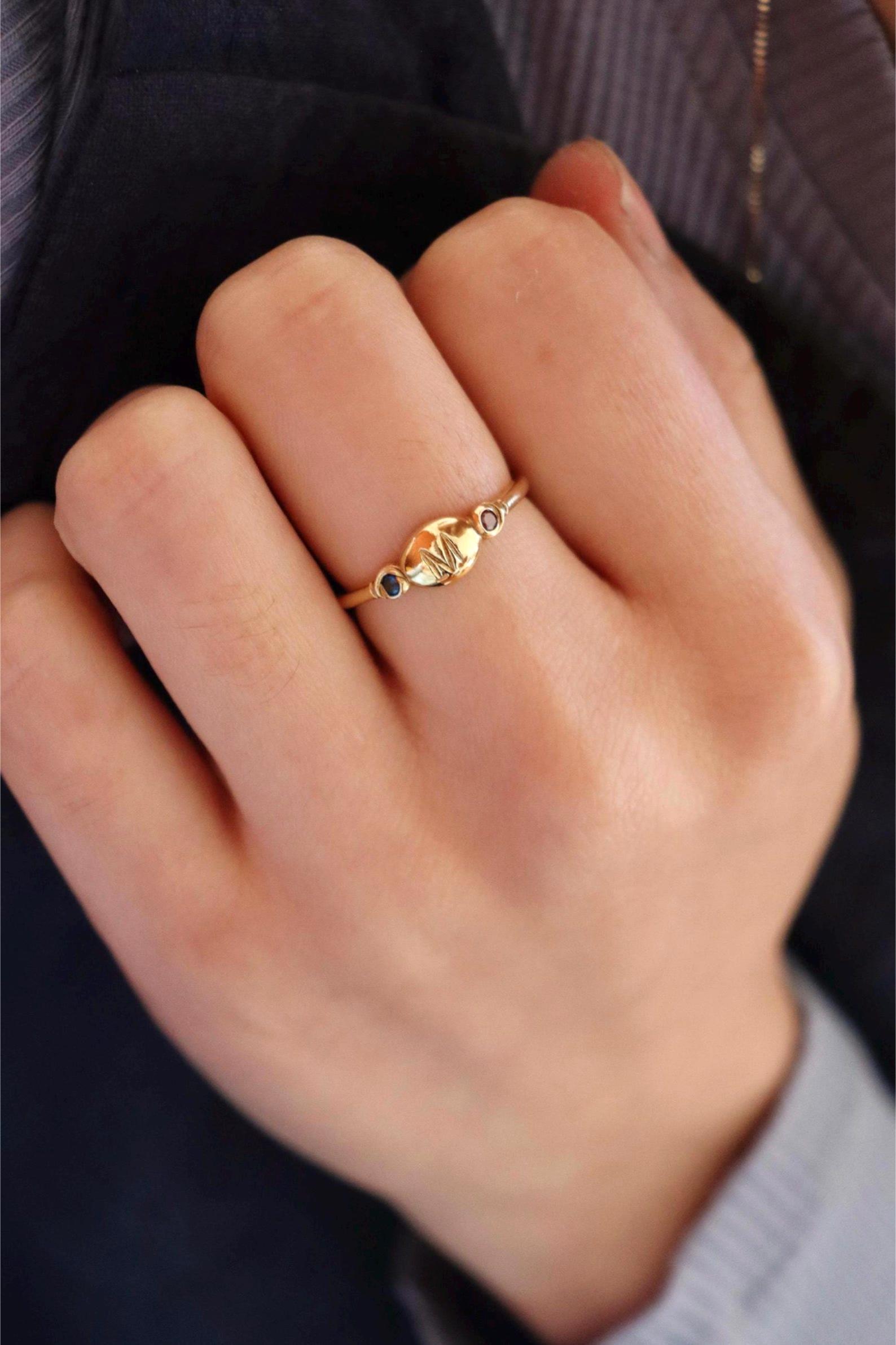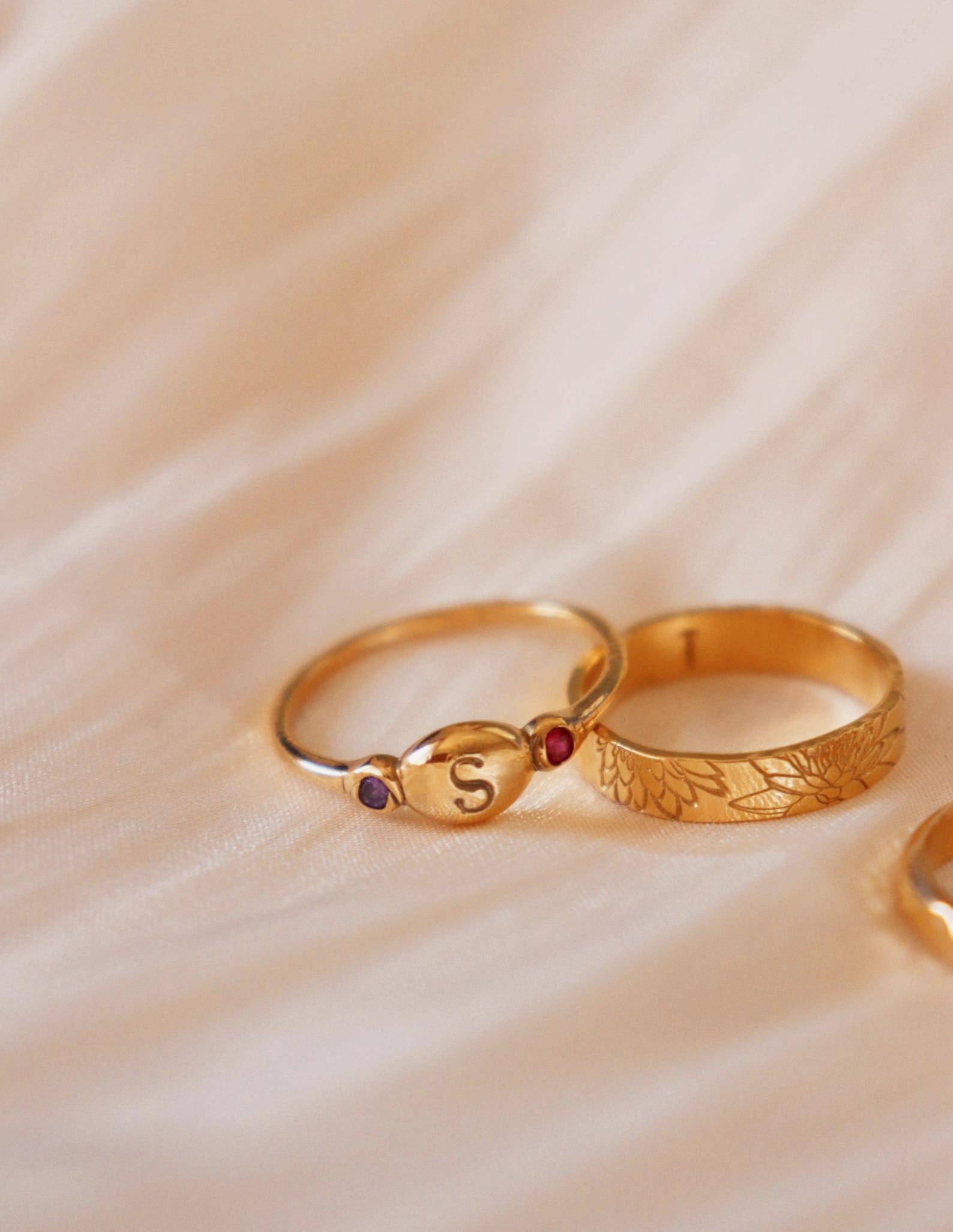 | Style | Custom Double Birthstone & Initial Bubble Ring |