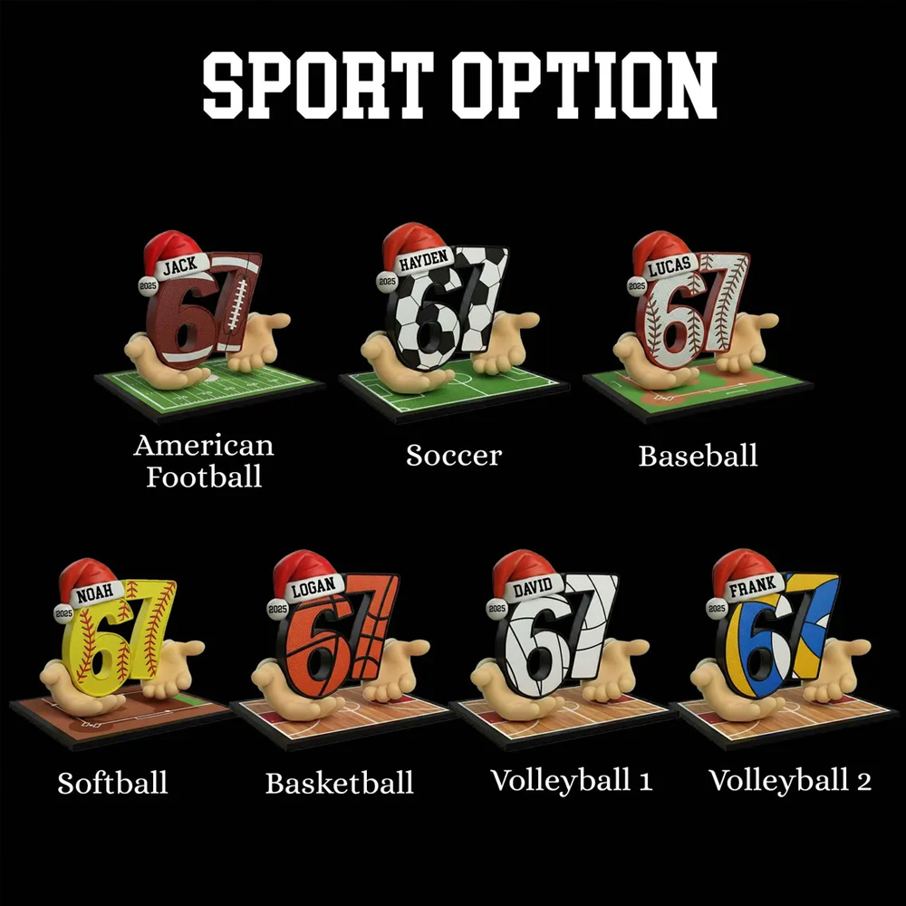 Unique Sports-Themed Design - Celebrate the joy of sports with this Personalized Name 67 Sports Ornament! Featuring playful elements representative of soccer, baseball, basketball, and more, this ornament captures the fun spirit of young athletes.