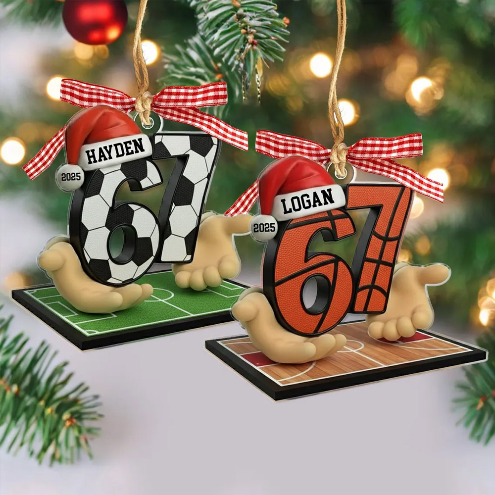 | Style | Custom Name 67 Soccer/Baseball/Volleyball/Basketball Christmas Ornament |