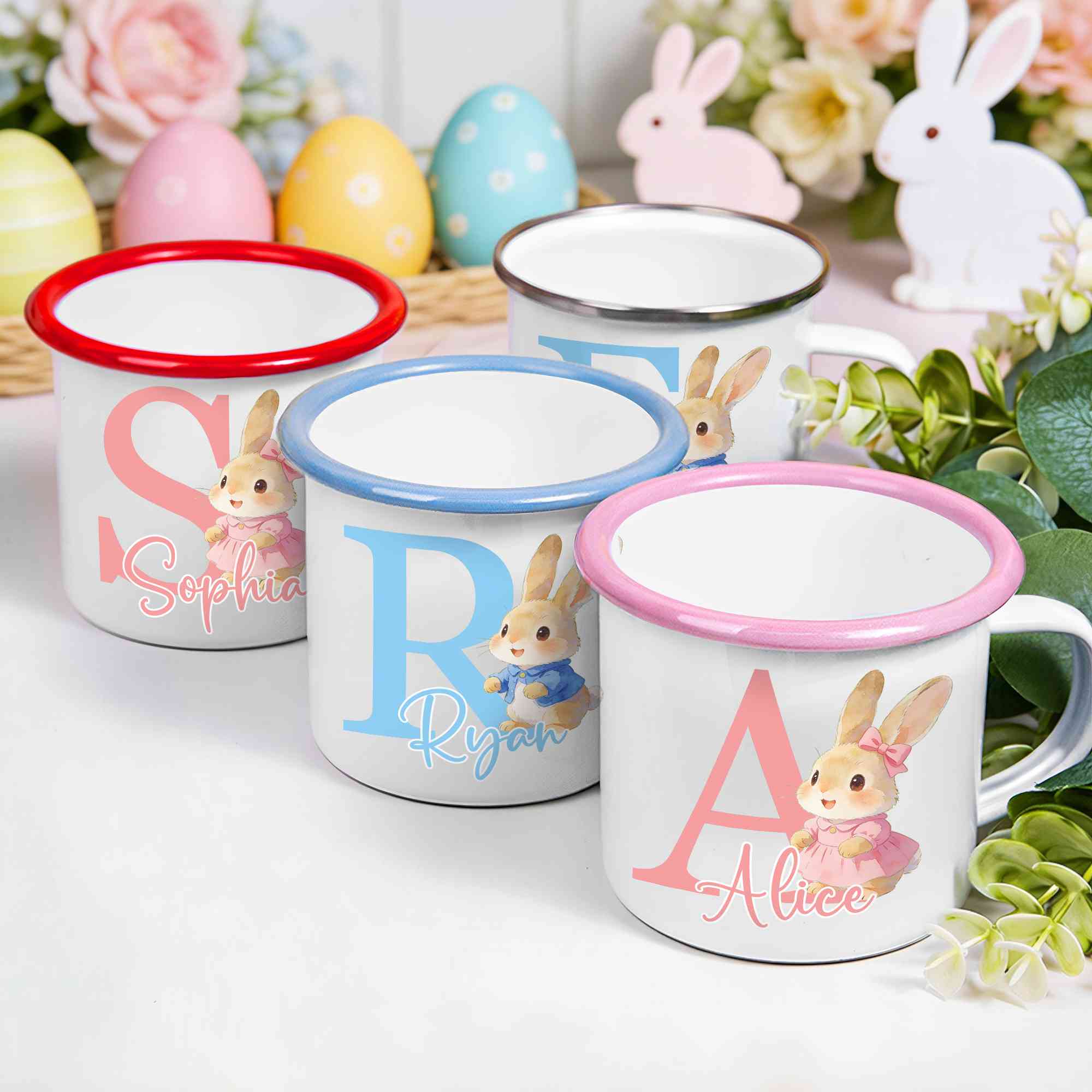 | Style | Custom Name Cute Cartoon Bunny Alphabet Easter Enamel Mug |