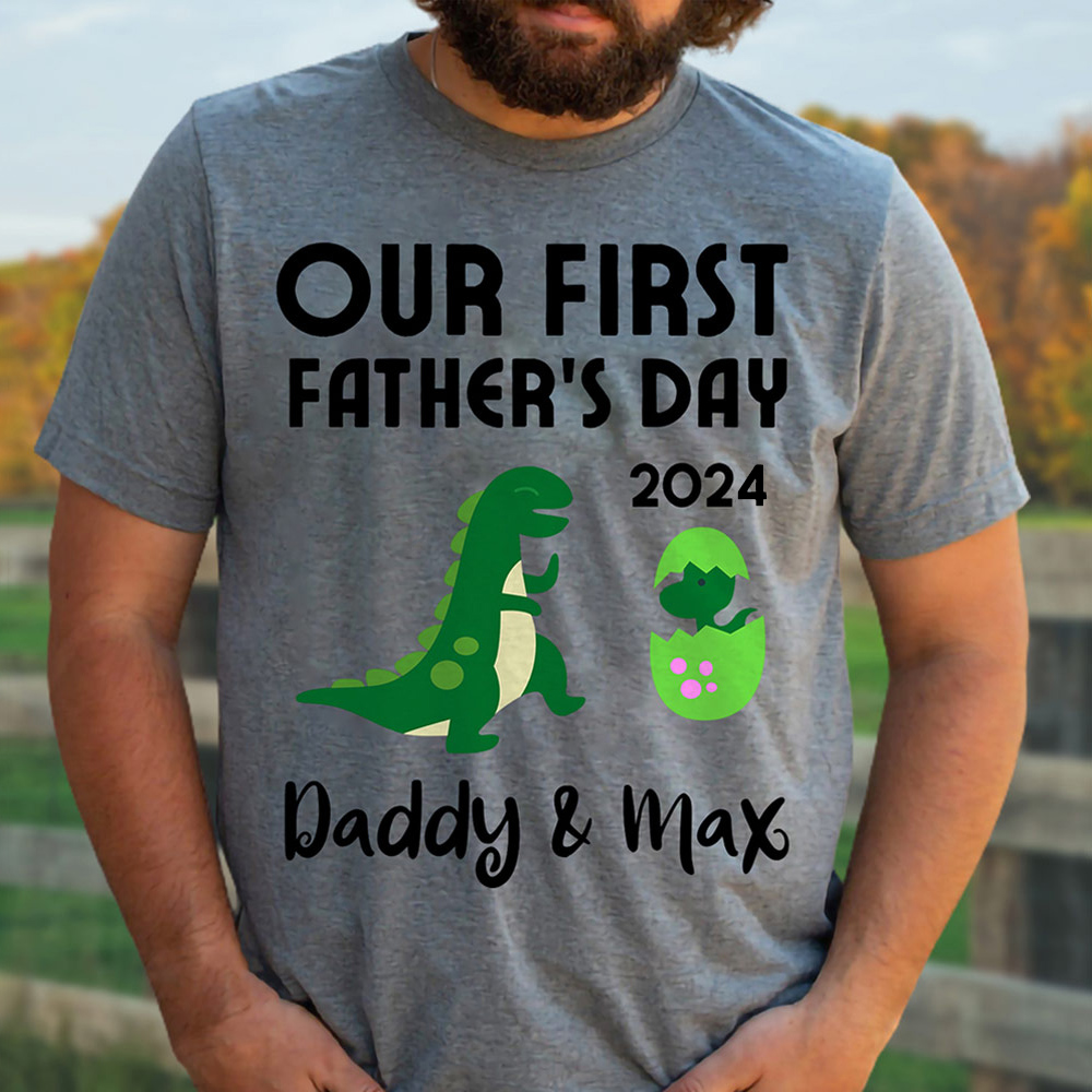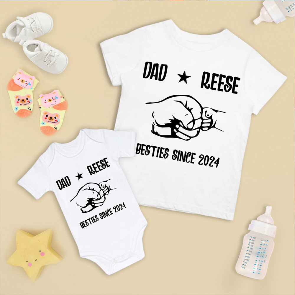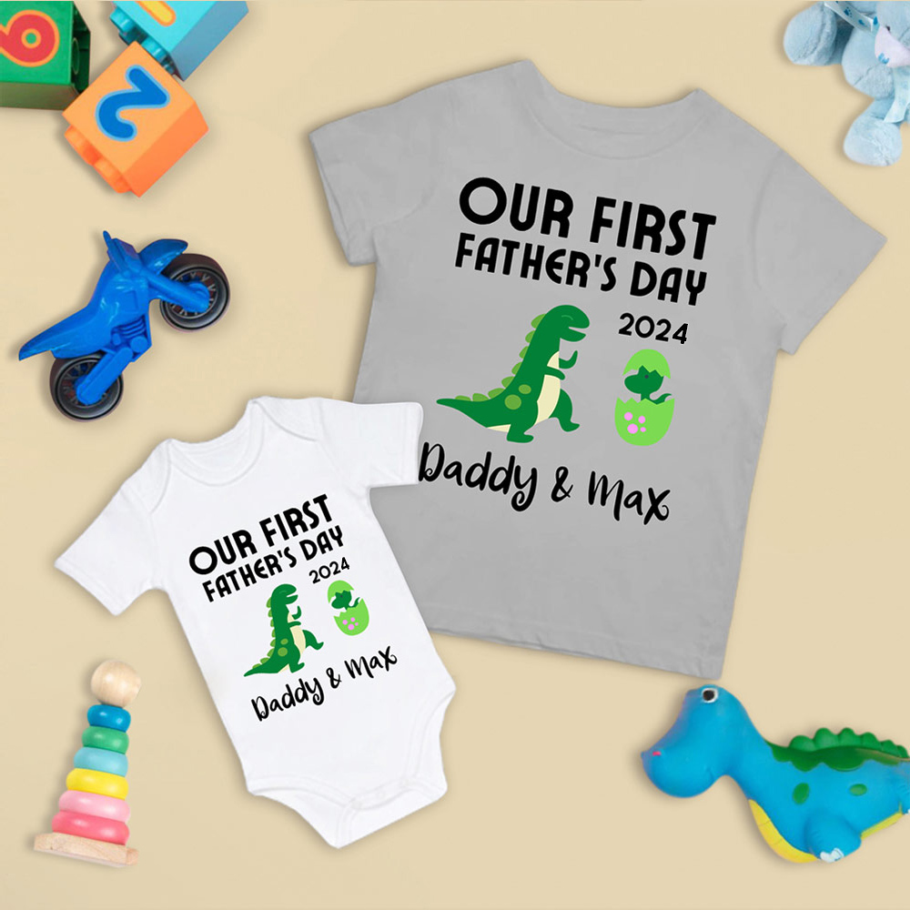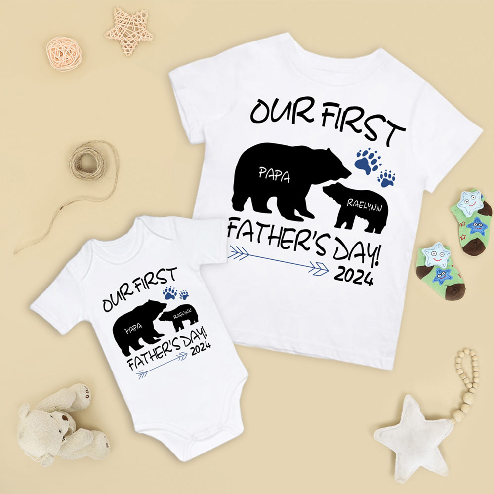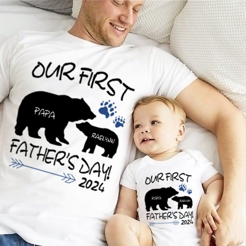 Custom Name Father and Baby Matching Set, Our First Father's Day Together 2025 Shirt, 100% Cotton Shirt, Father's Day Gift for Baby New Dad