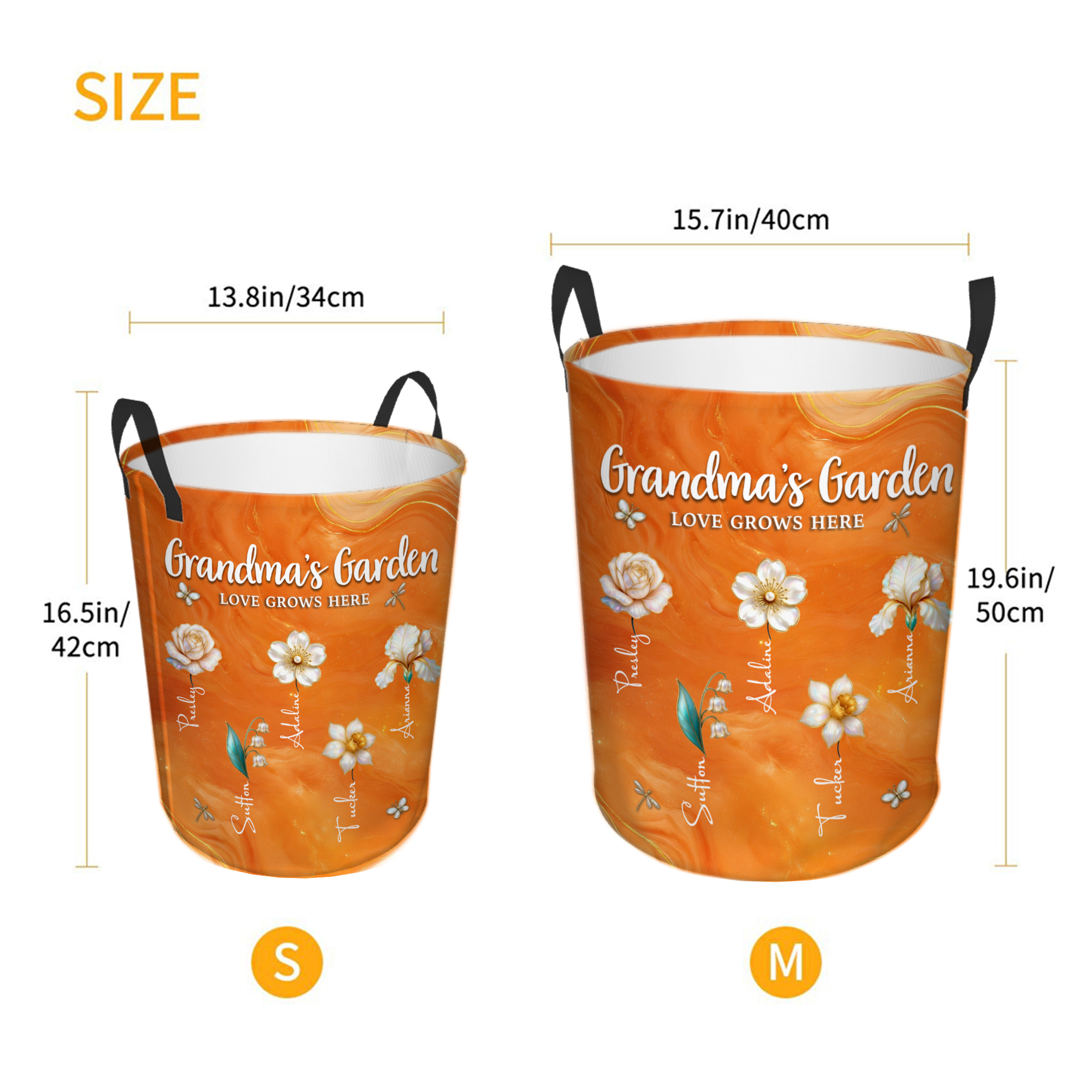 Custom Names & Birth Flowers Grandma's Garden Storage Basket with Handles, Large Capacity Laundry Basket, Birthday/Mother's Day Gift for Mom/Grandma