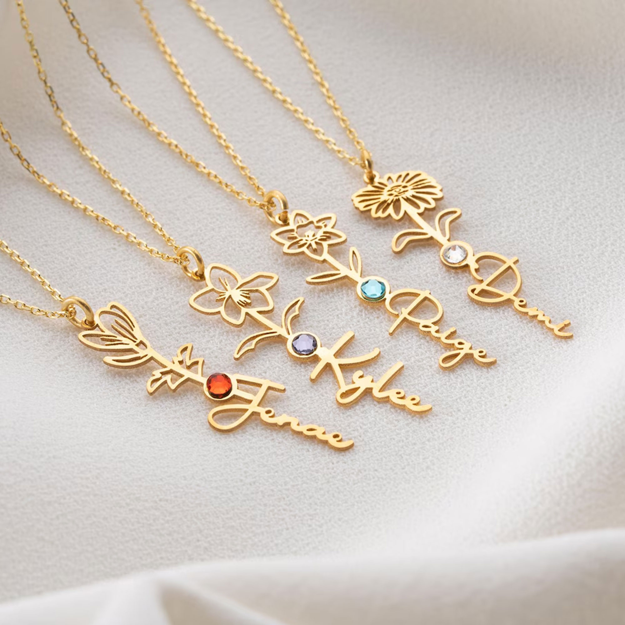 Style Personalized Birth Flower & Birthstone Necklace with Name