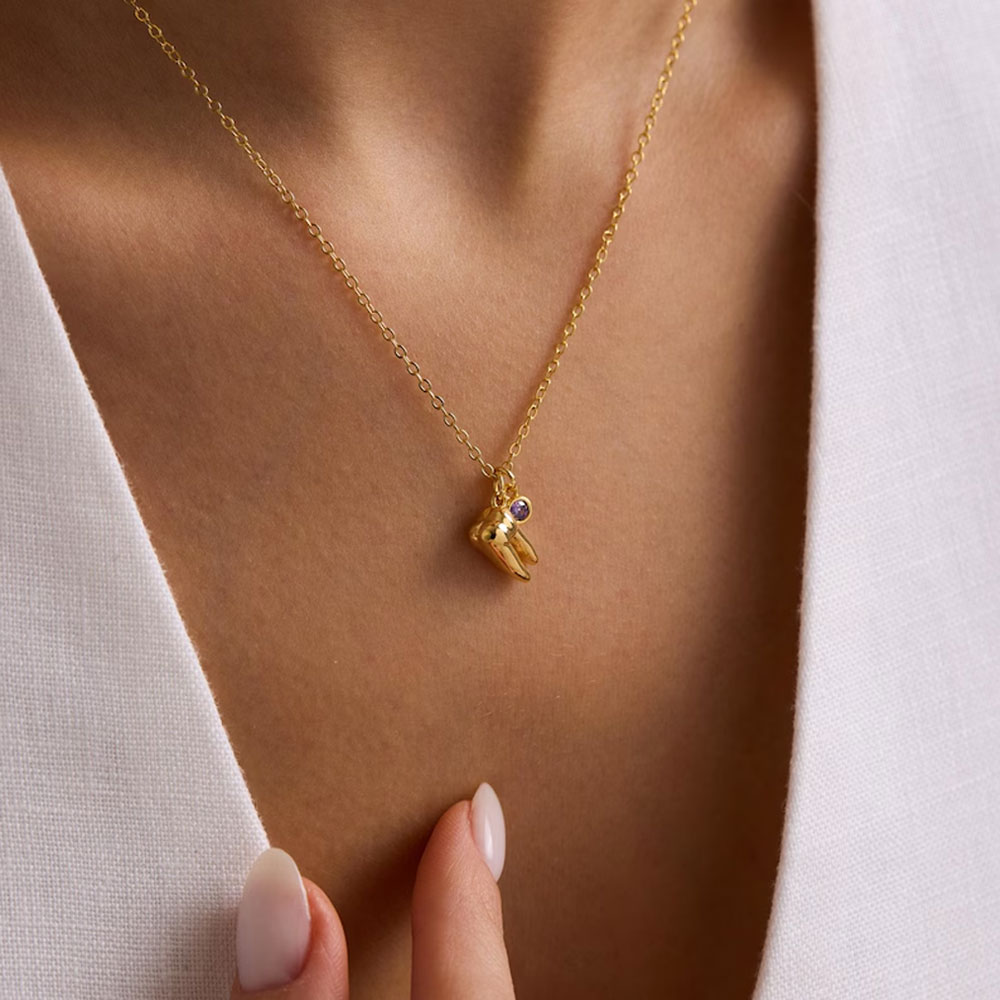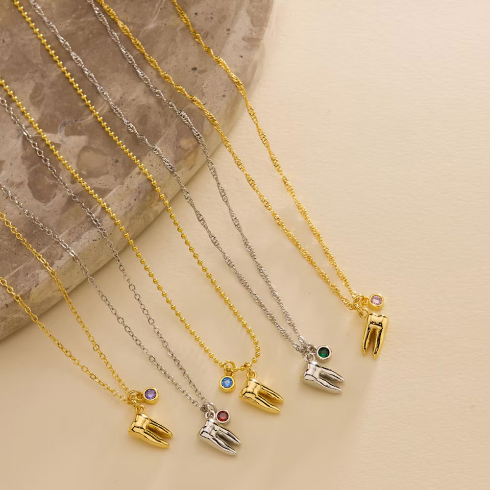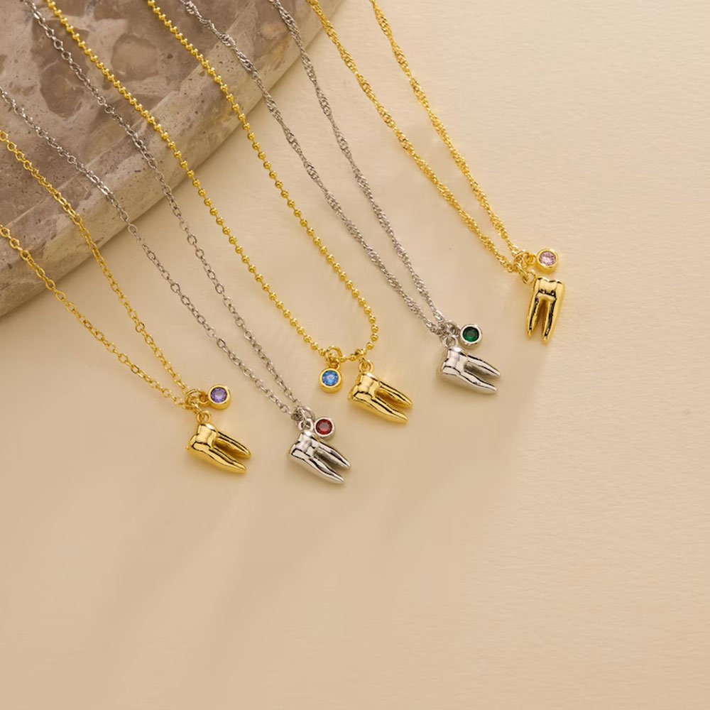 | Style | Personalized Birthstone Tooth Pendant Necklace |