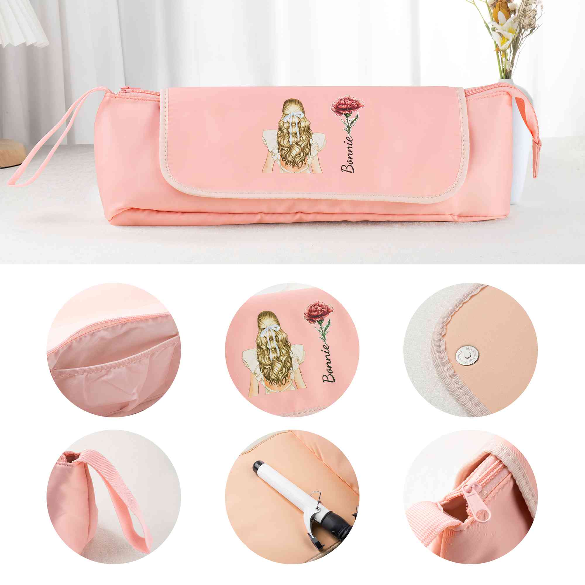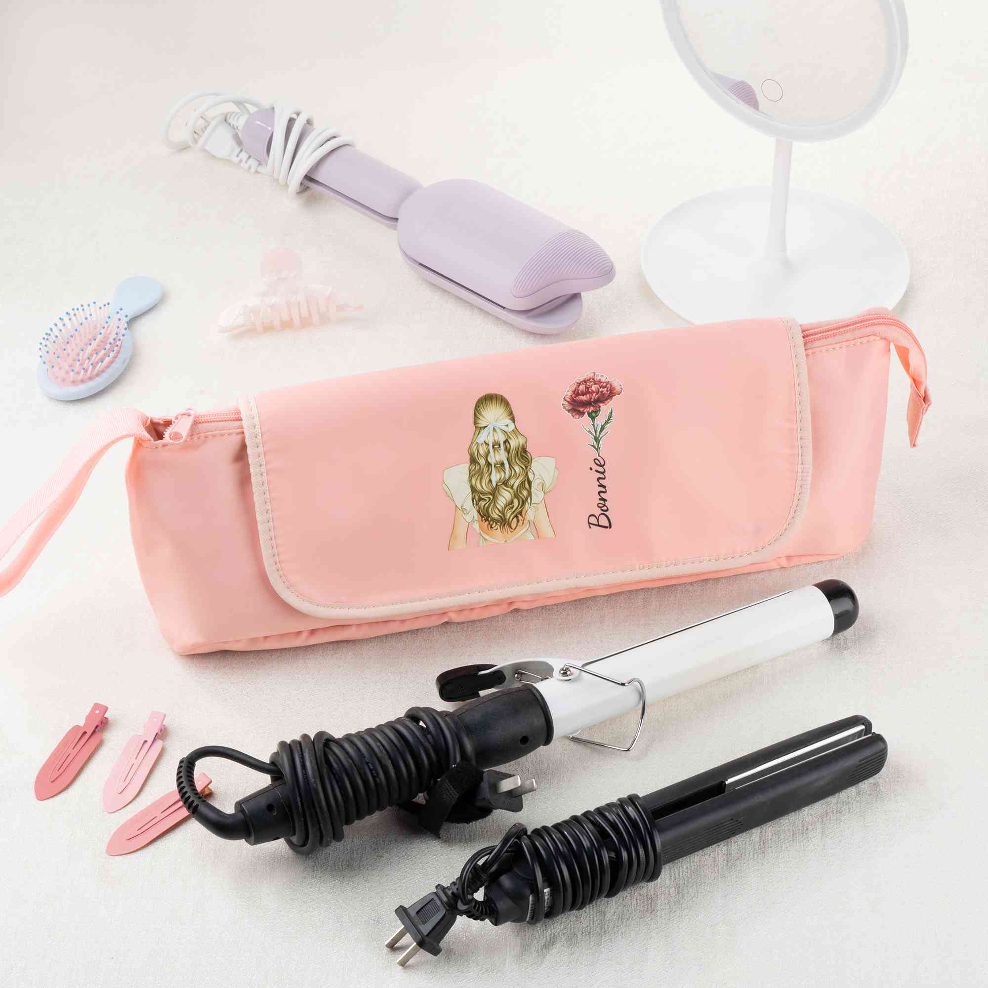Personalized Design - This elegant hair styling tool pouch can be customized with your name and birth flower, adding a unique touch that reflects your personality. Featuring a chic back-view design of a girl, the pouch adds a stylish flair to your beauty accessories.