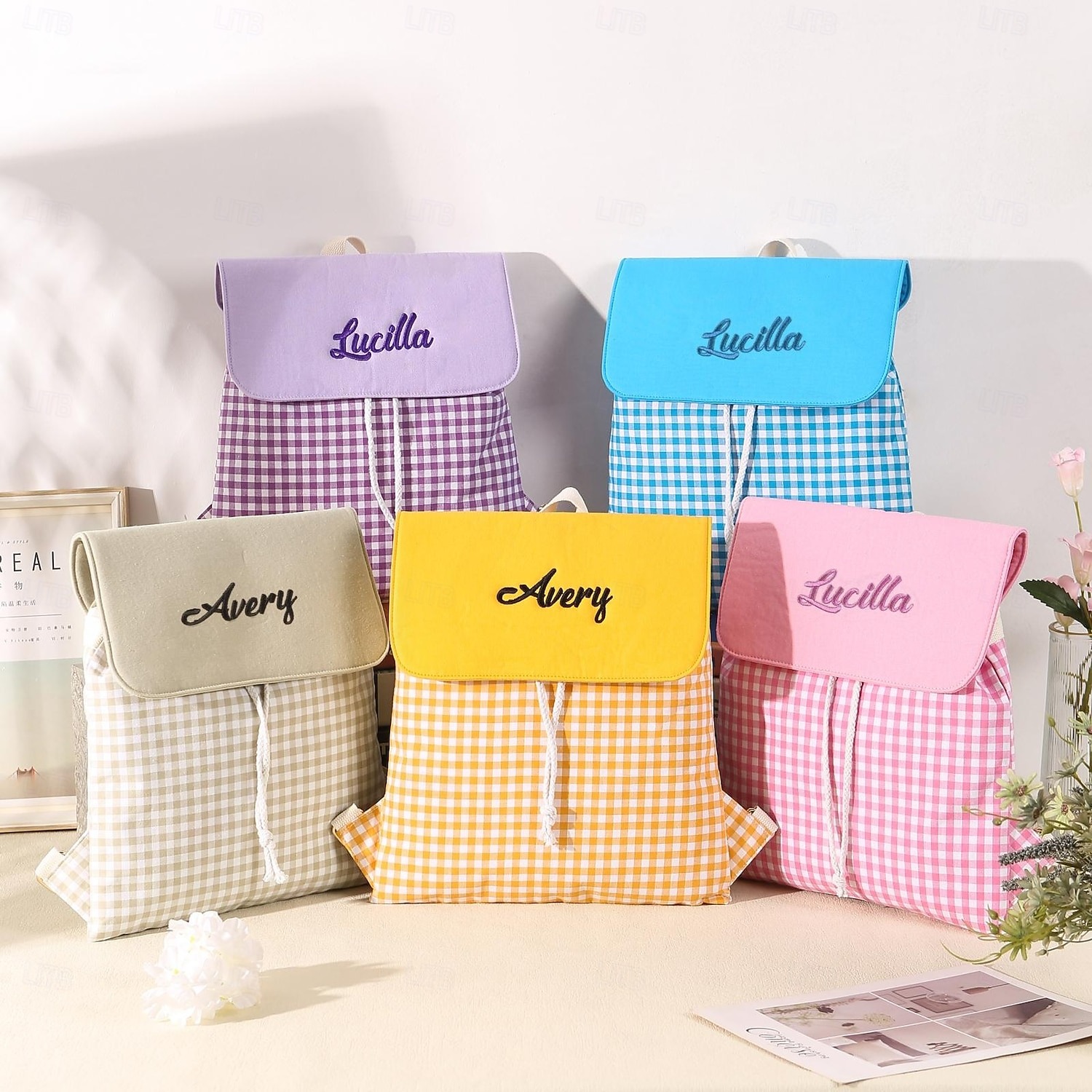 Personalized Embroidered Name Backpack Bag, Large Capacity Flap Book Bag with Drawstring, Travel Organizer, Back to School Gift for Students/Girls/Kids