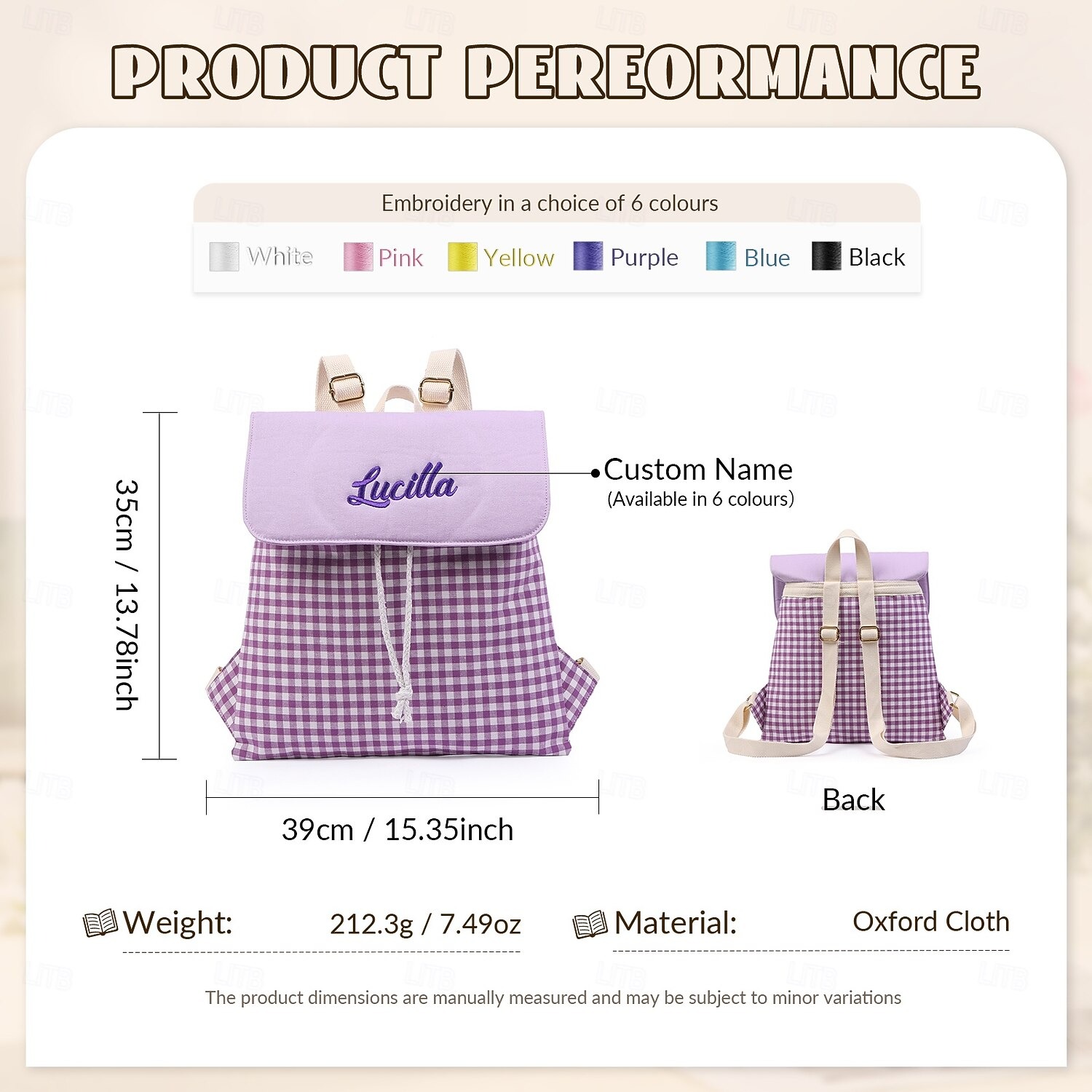 Customizable Embroidery - Personalize the backpack by adding an embroidered name to make it a unique accessory. This thoughtful detail not only adds style but also helps you quickly identify the bag.