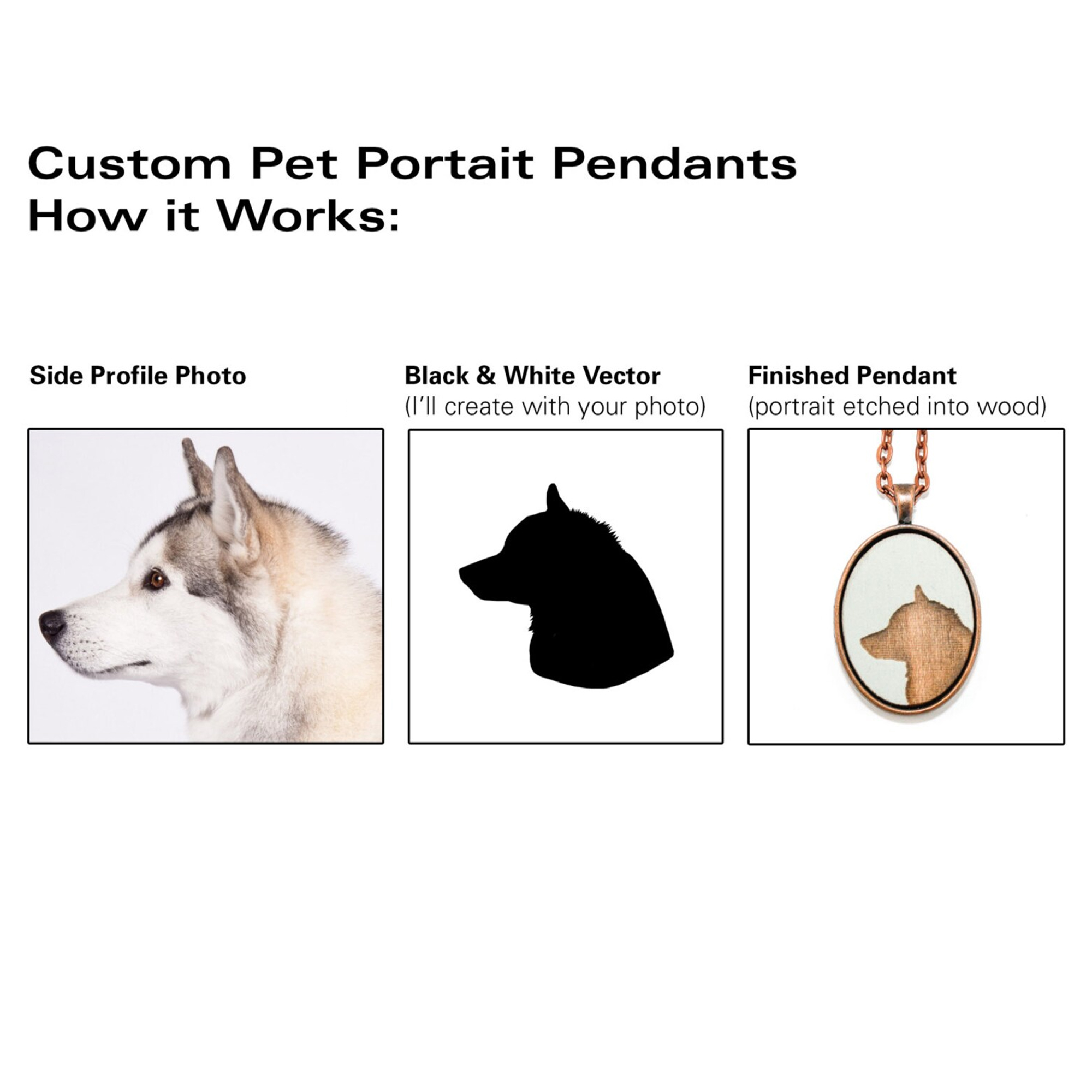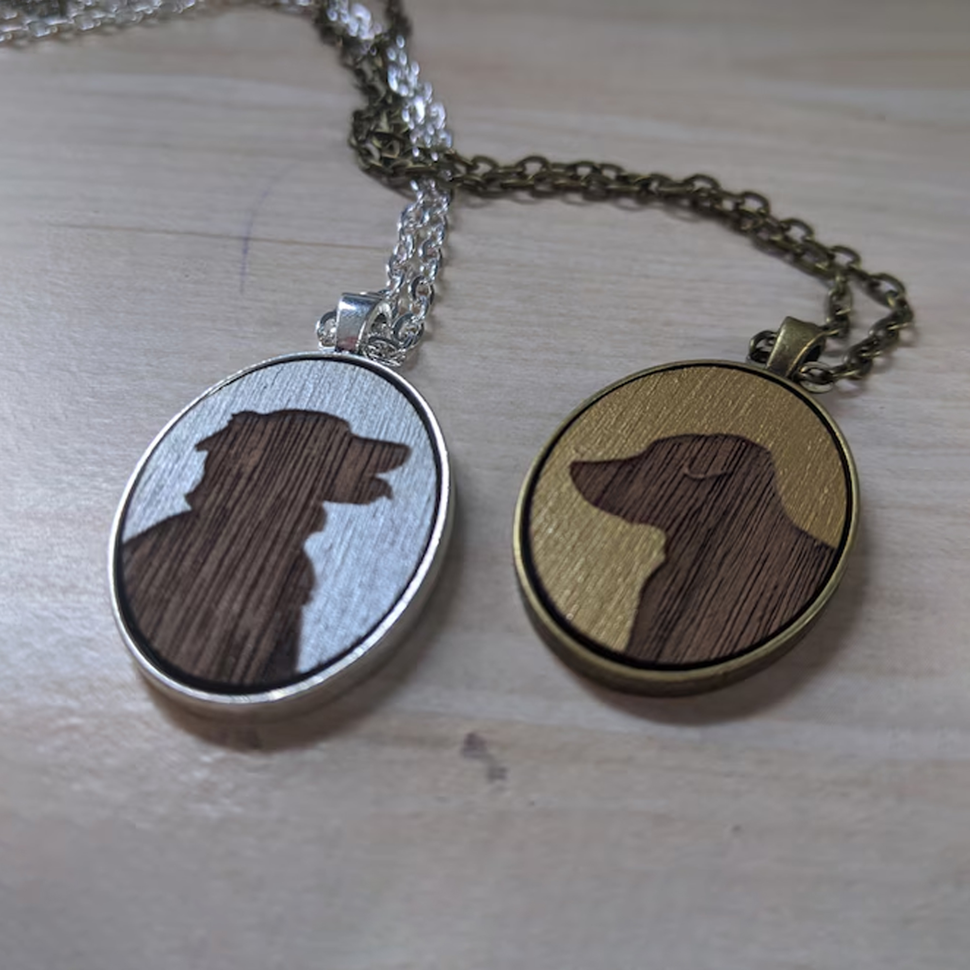 Personalized Engraved Pet Portrait Pendant, Wooden Cameo Dog/Cat Silhouette Necklace, Pet Memorial Jewelry, Birthday Gift for Pet Lovers/Owners/Her