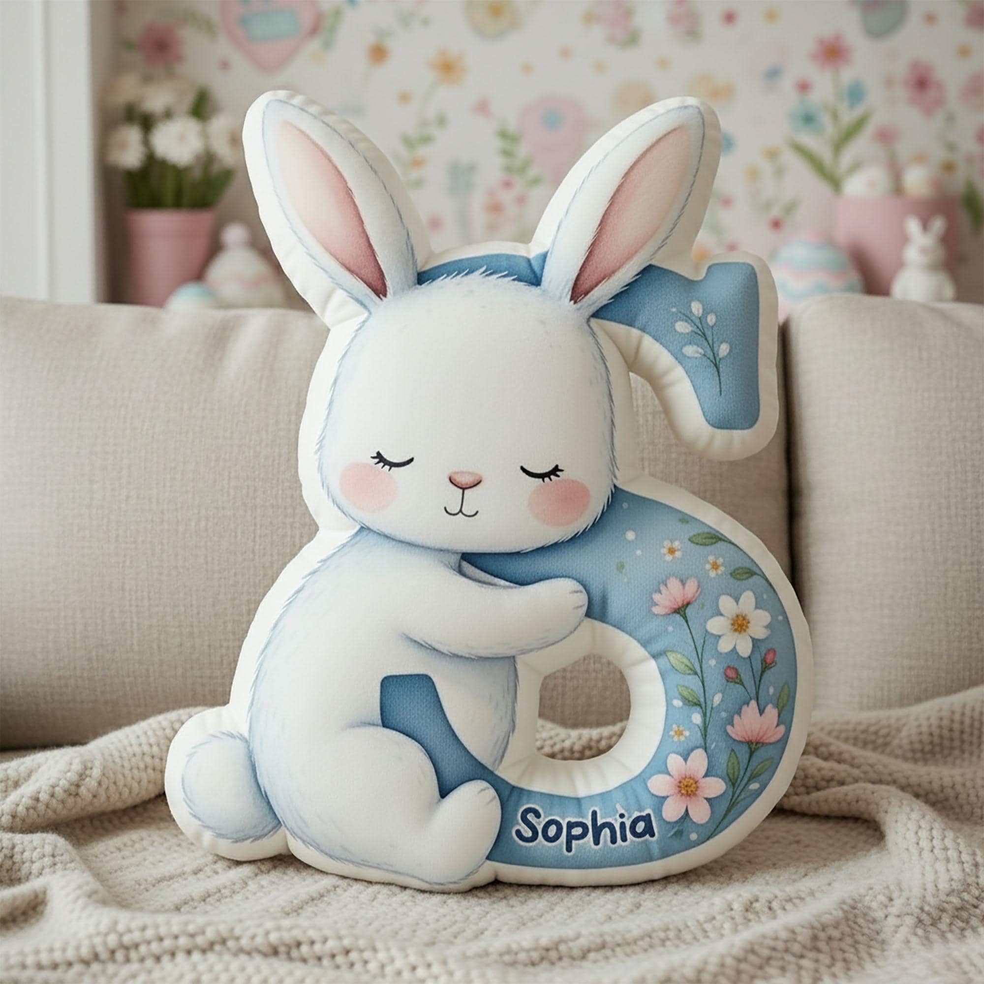 Personalized Hug Bunny Easter Letter Pillow with Name, Soft 3D Floral Rabbit Alphabet Cushion, Nursery Decor, Easter/Birthday Gift for Kids/Boys/Girls