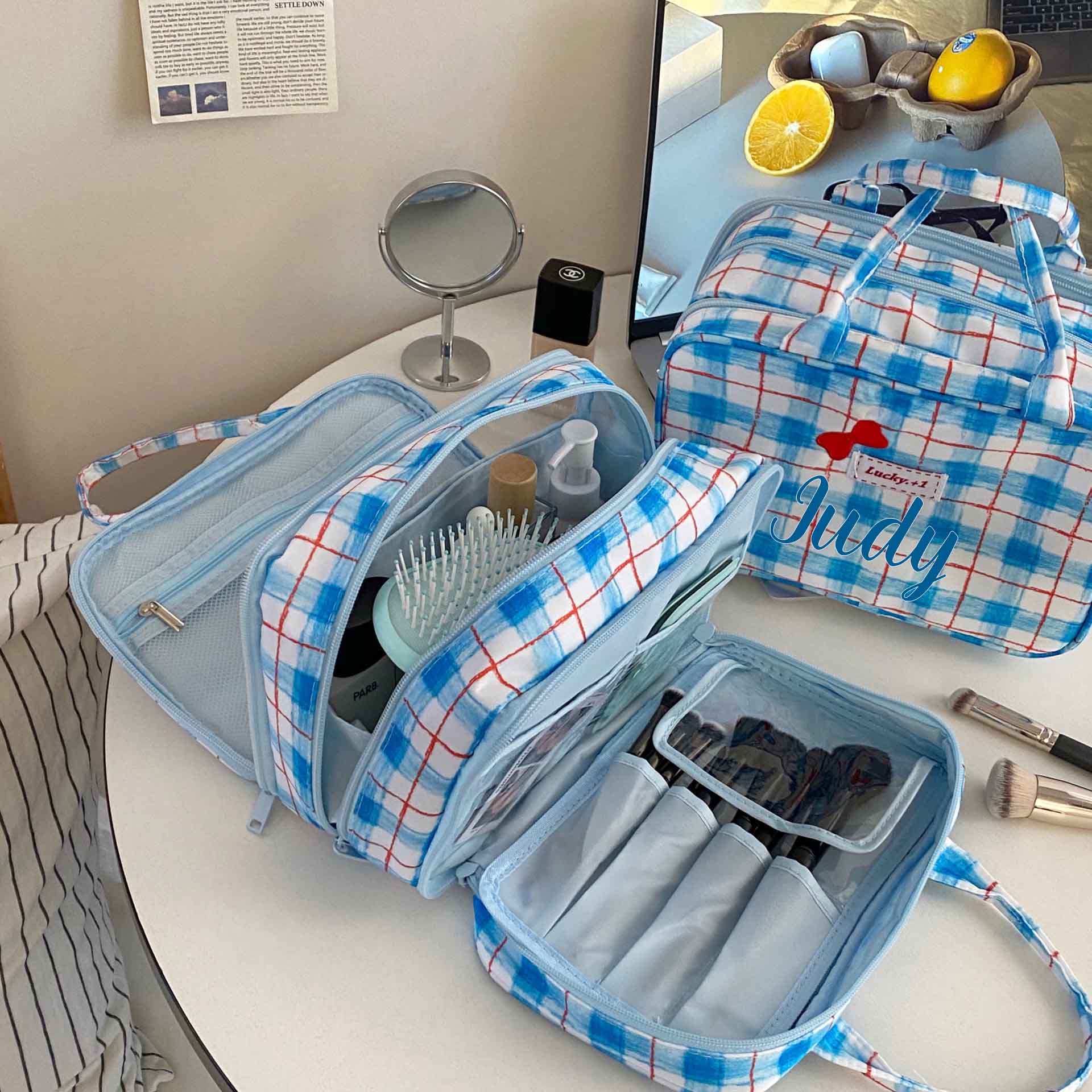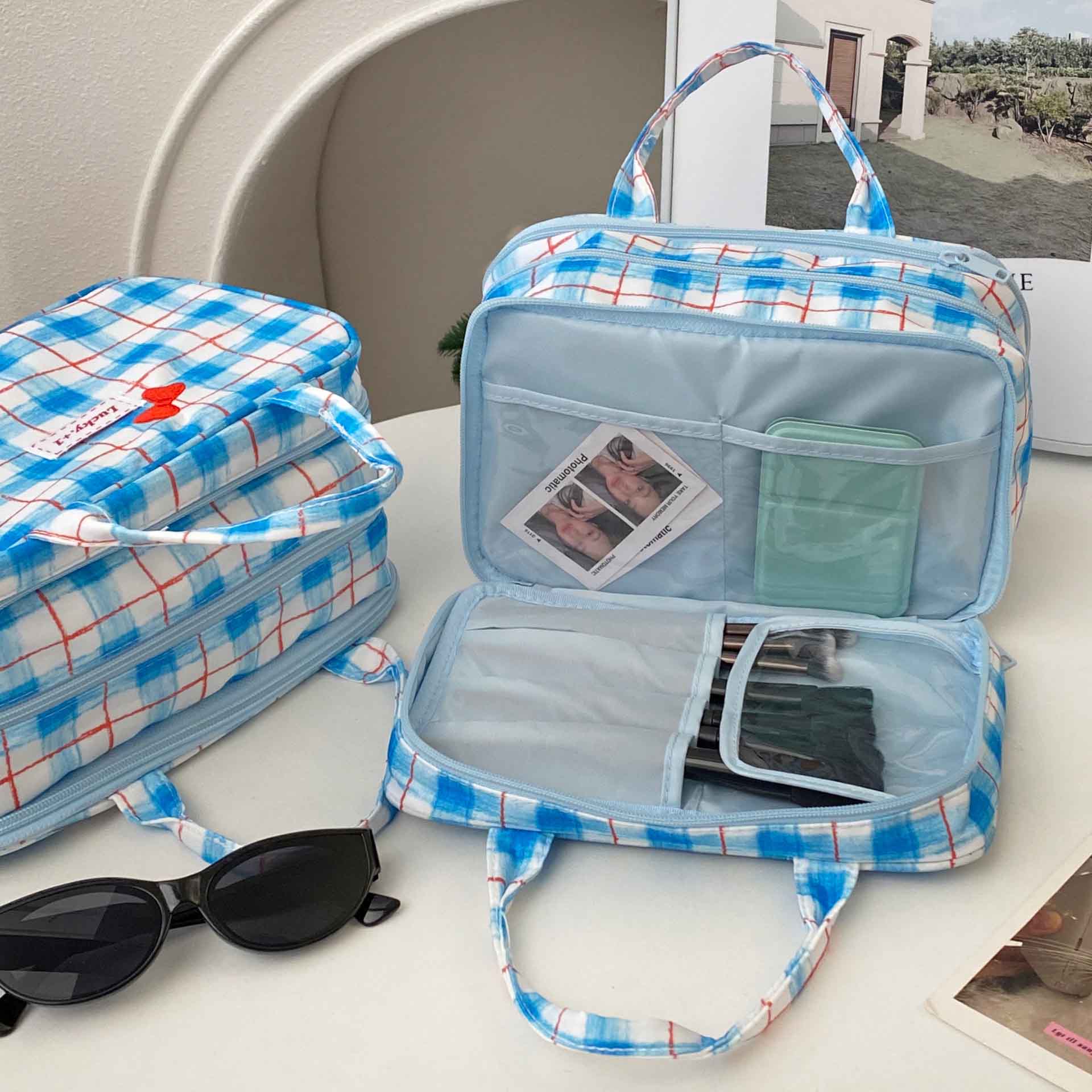 Multi-Compartment Organizer - Designed as a travel makeup bag, this handbag includes multiple compartments to keep cosmetics and essentials organized. Its spacious interior ensures that everything has its place, making it ideal for both daily use and travel.