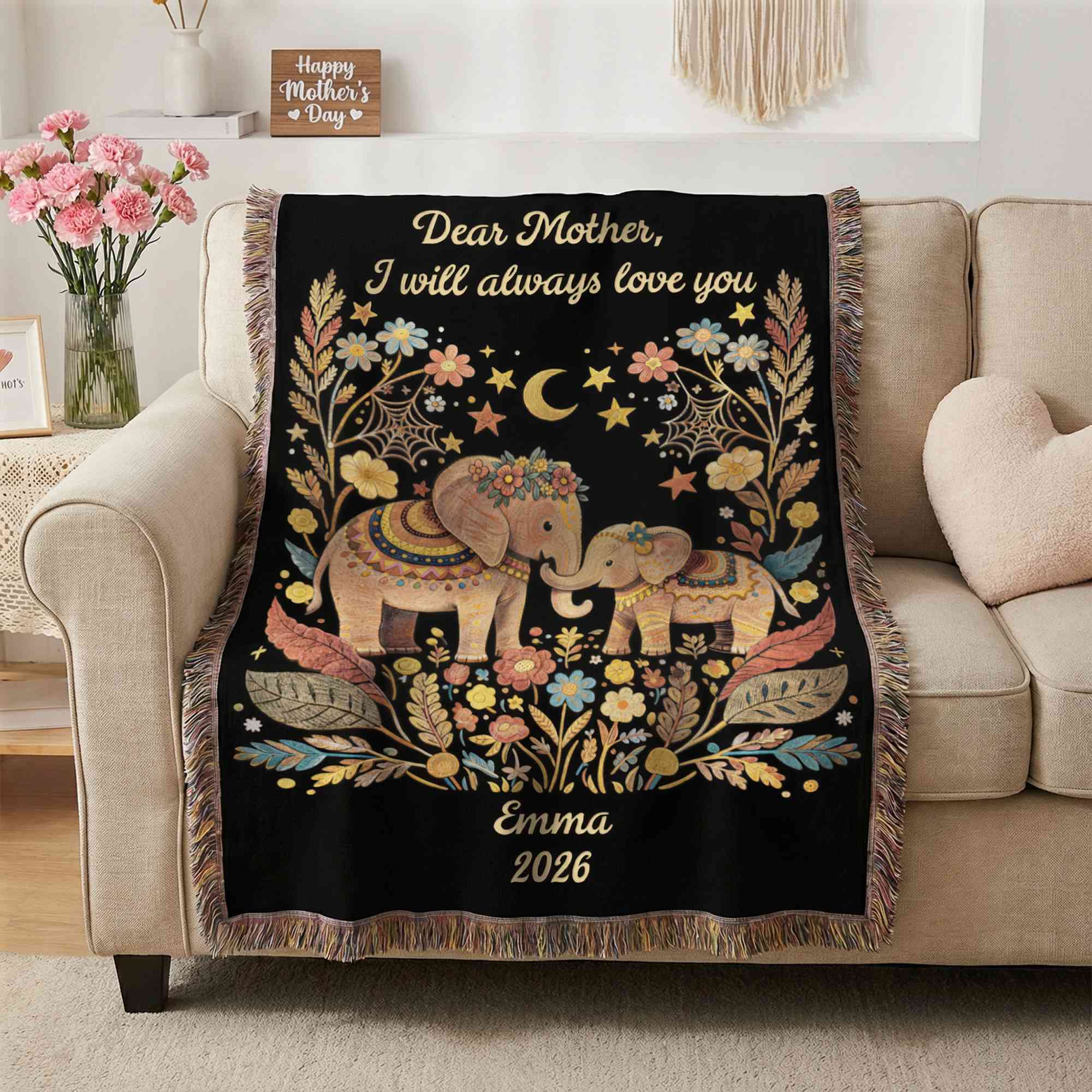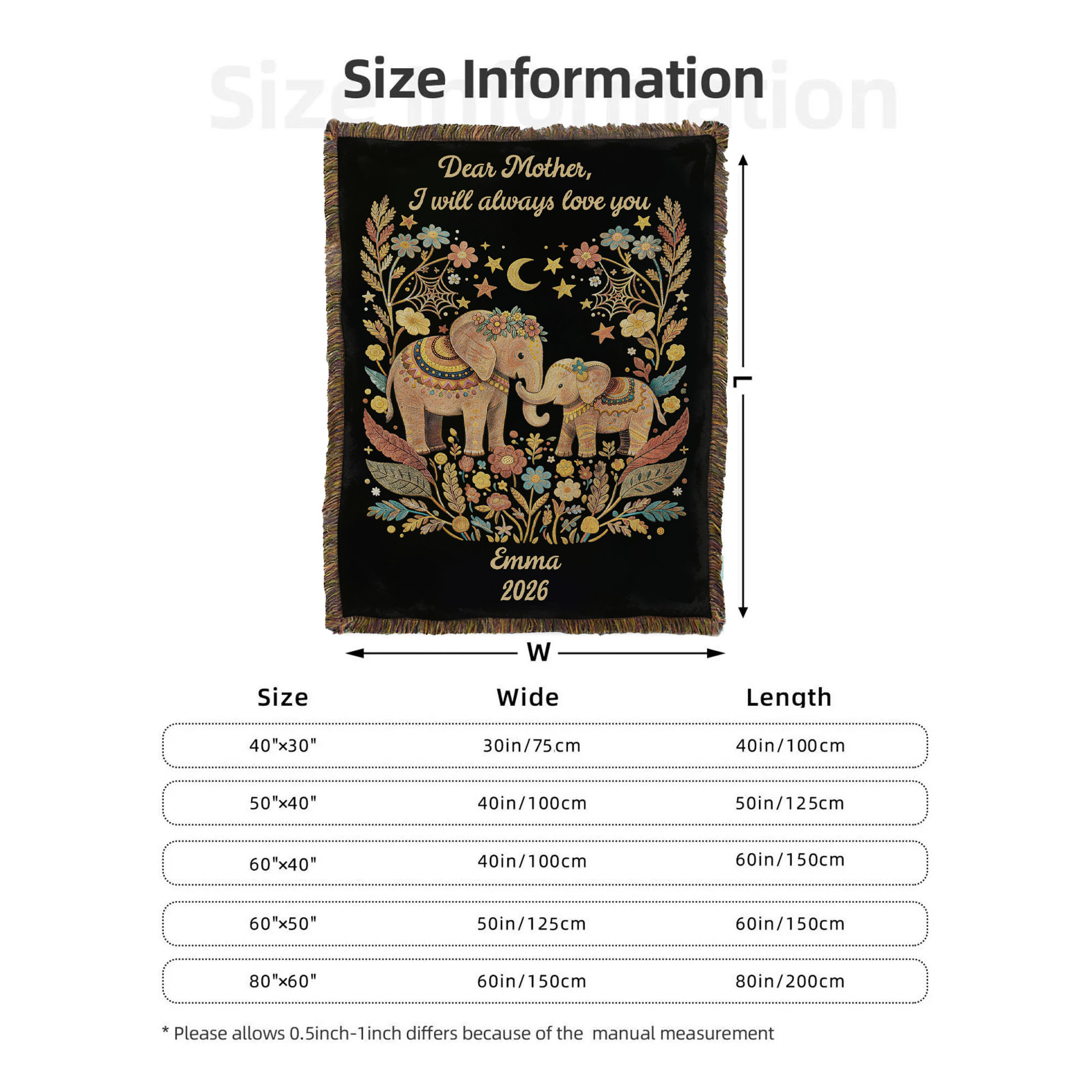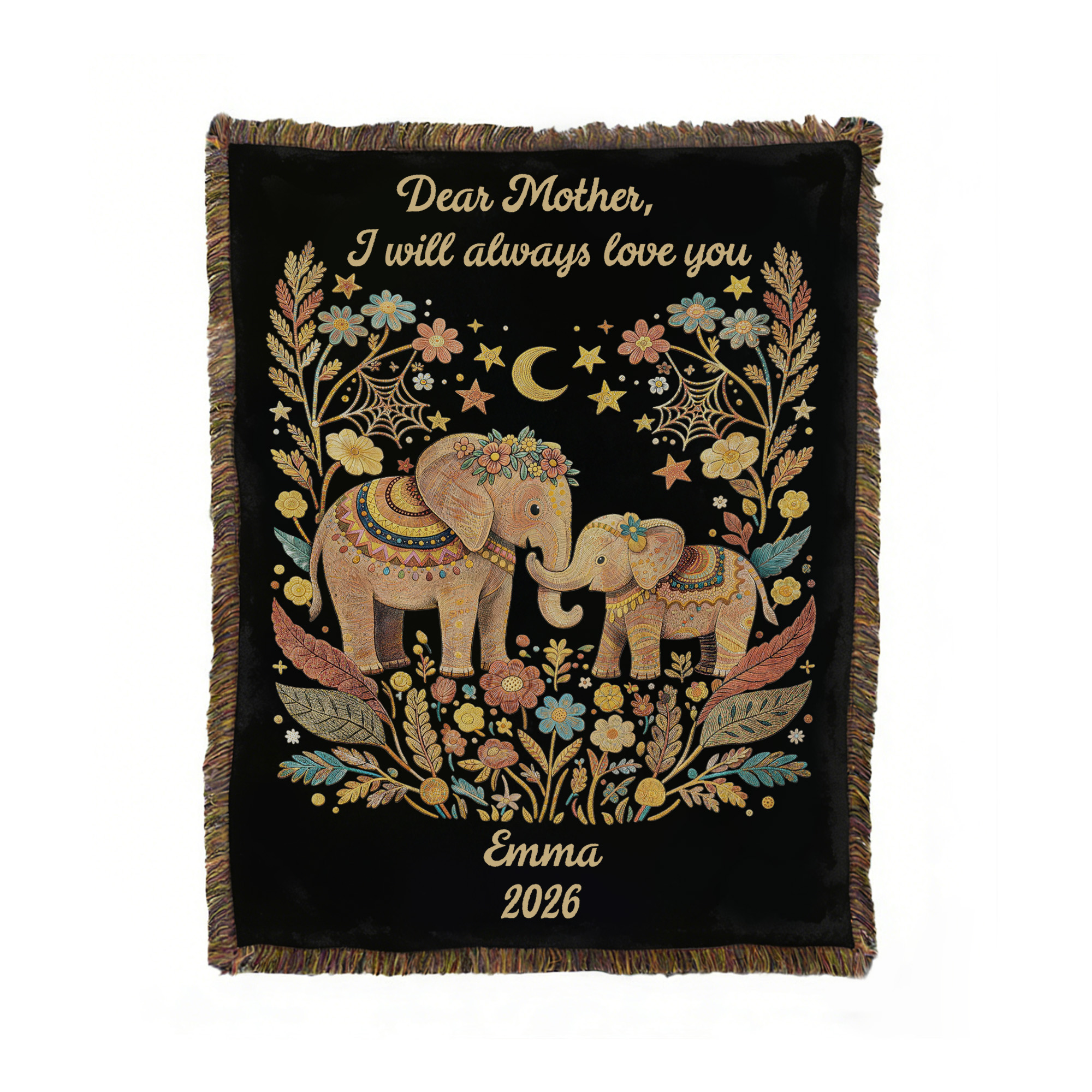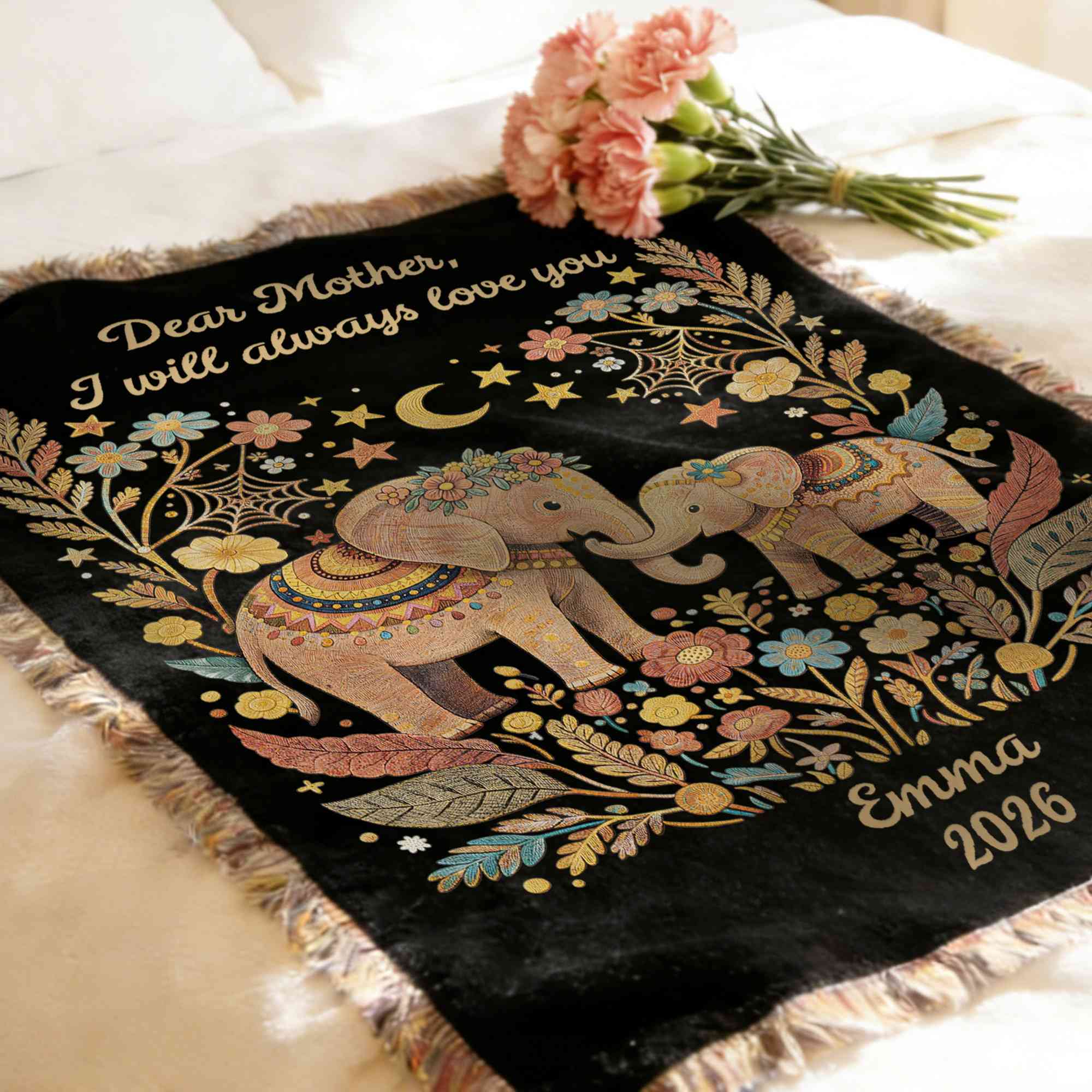 Charming Elephant Design - The blanket features a gentle mama elephant with her little one, surrounded by soft floral details that express warmth, love, and family connection. The elegant layout adds a cozy yet stylish touch to any space.