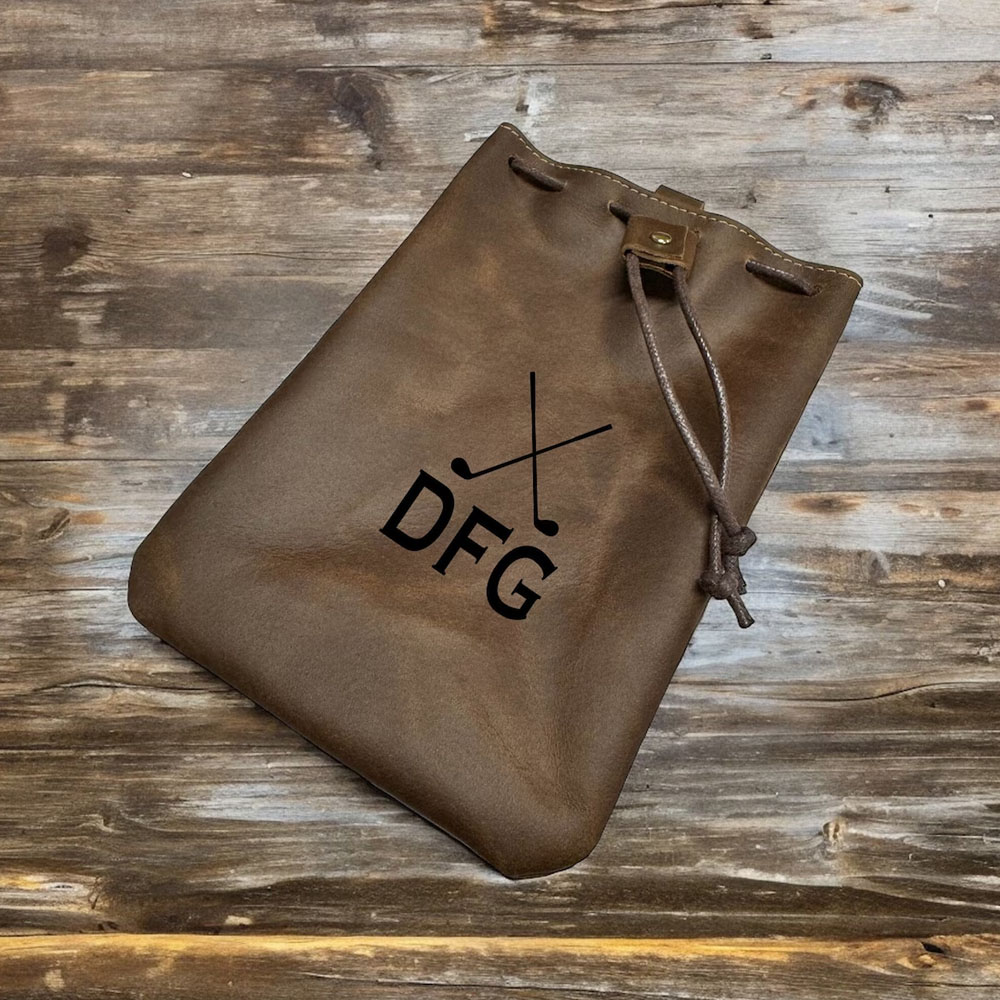 Personalized Name Golf Ball Pouch, Genuine Leather Golf Tee Bag with Drawstring, Golf Accessories, Birthday/Father's Day Gift for Golf Lovers/Him/Dad