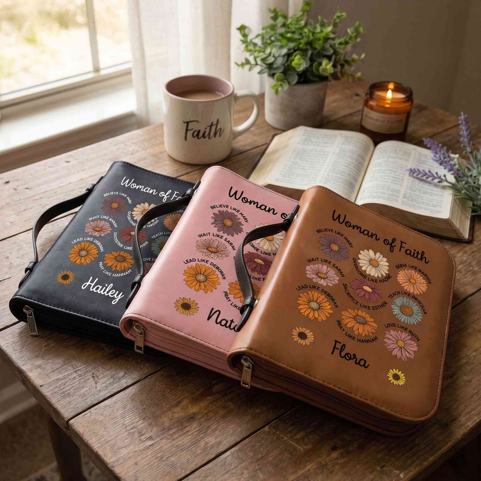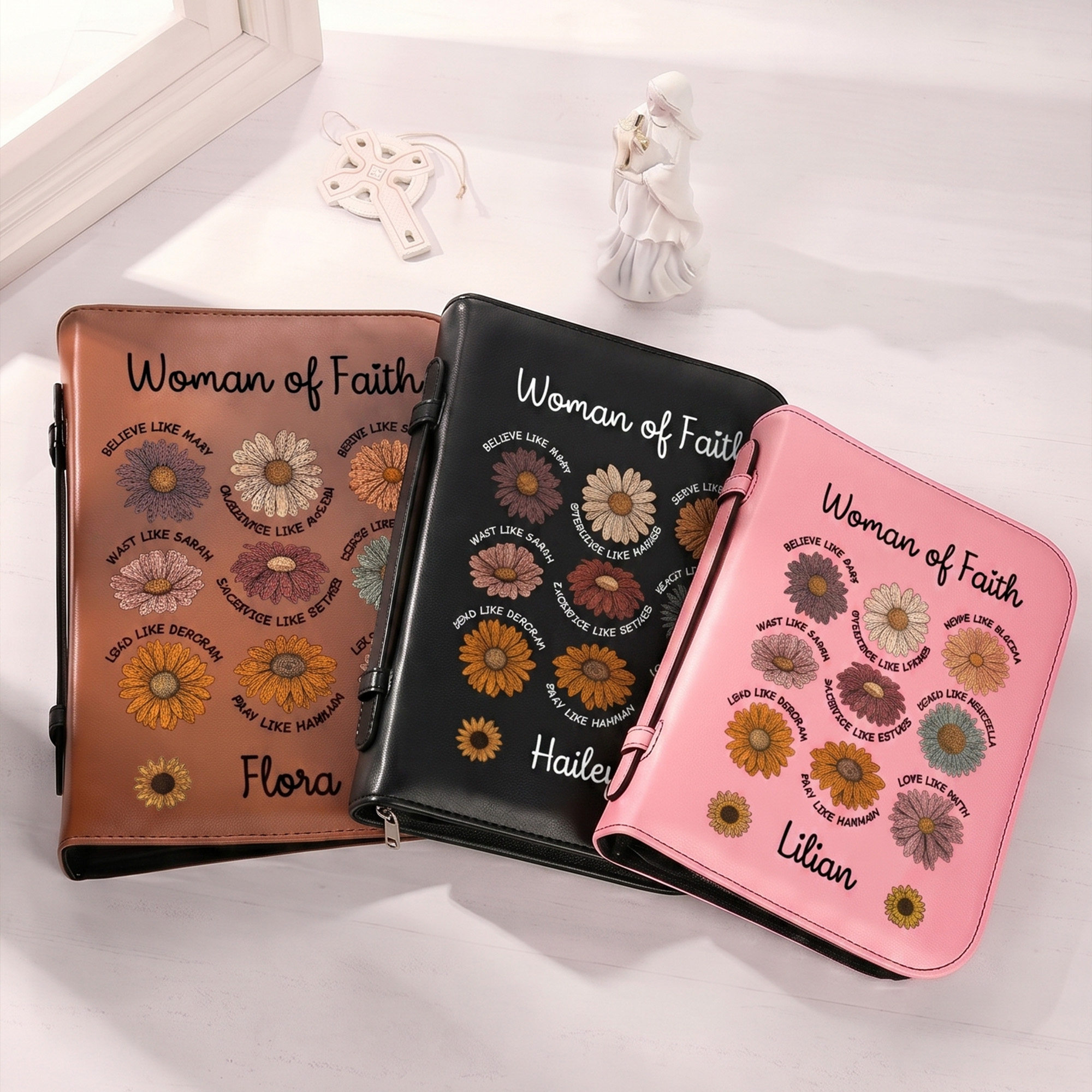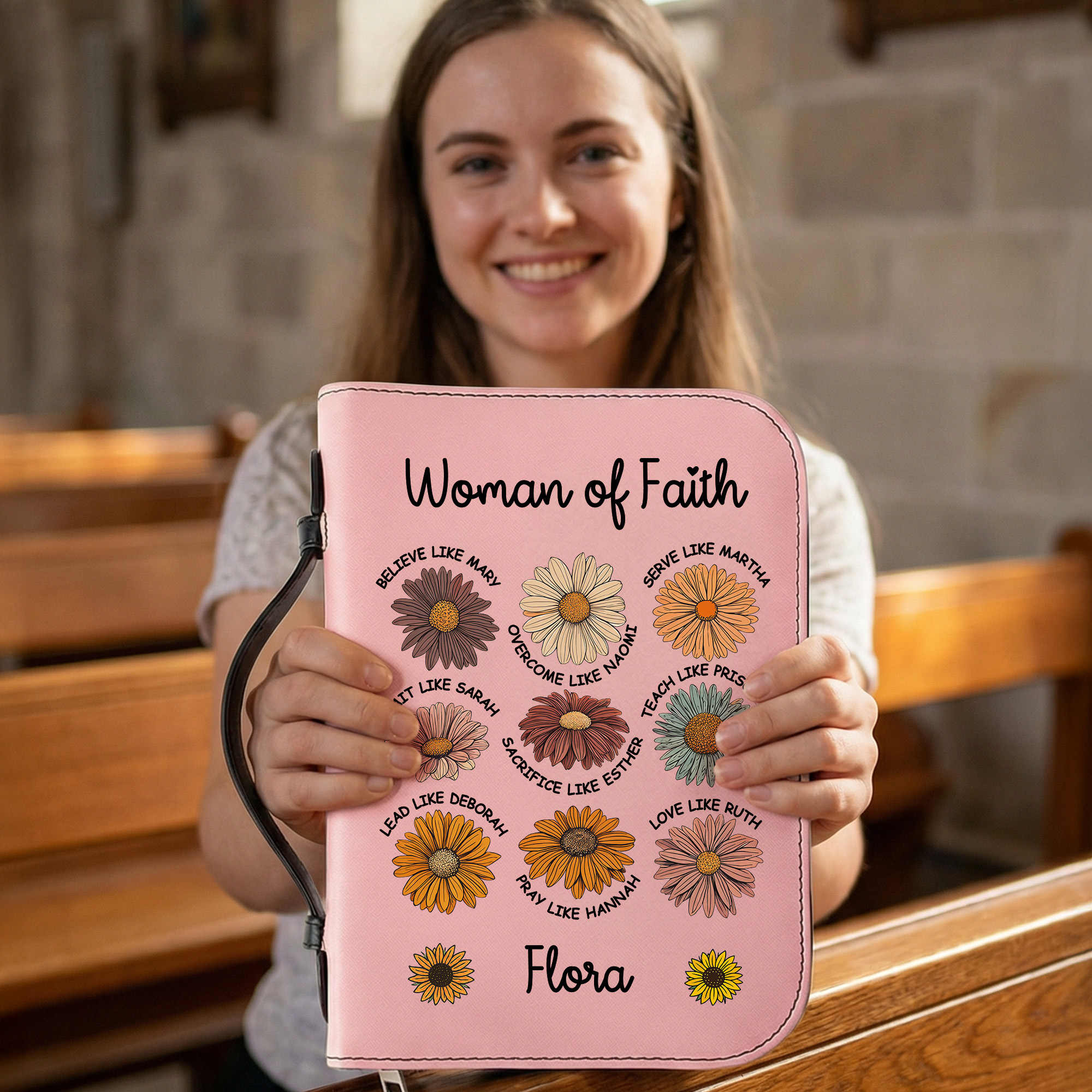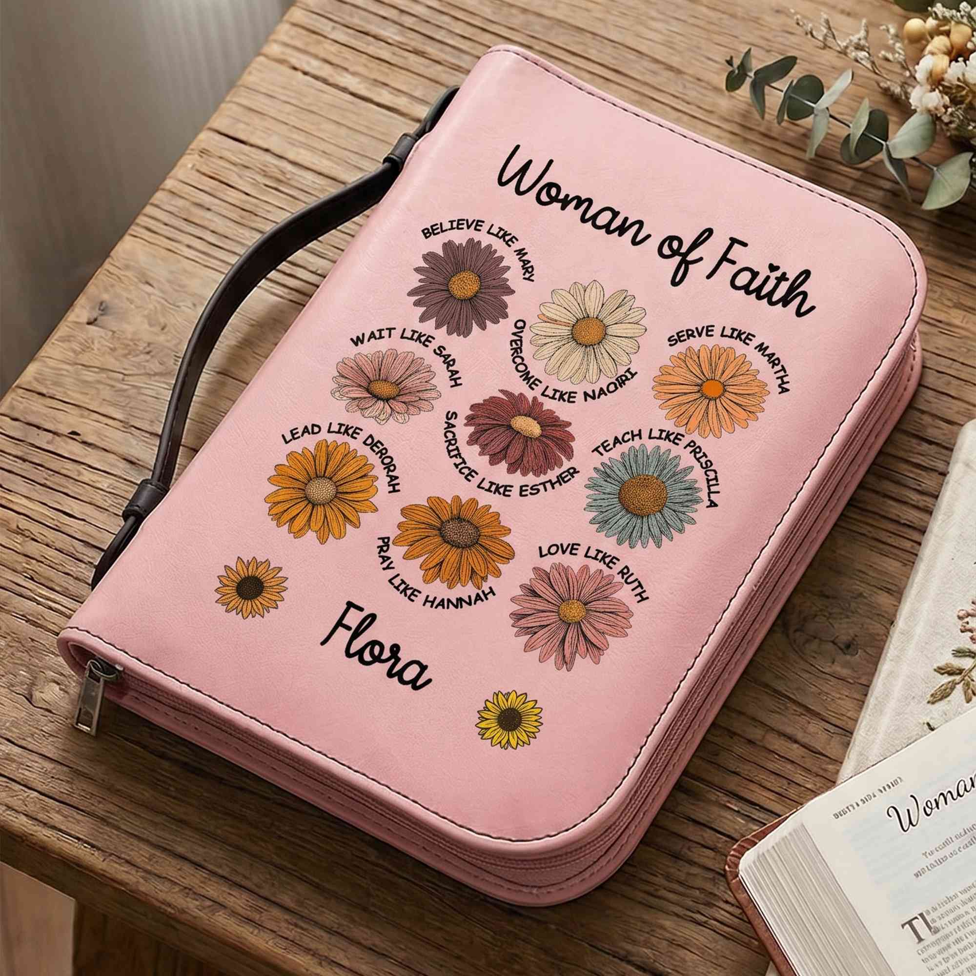 | Style | Personalized Name Woman of Faith Inspirational Bible Verse Daisies Bible Cover |
