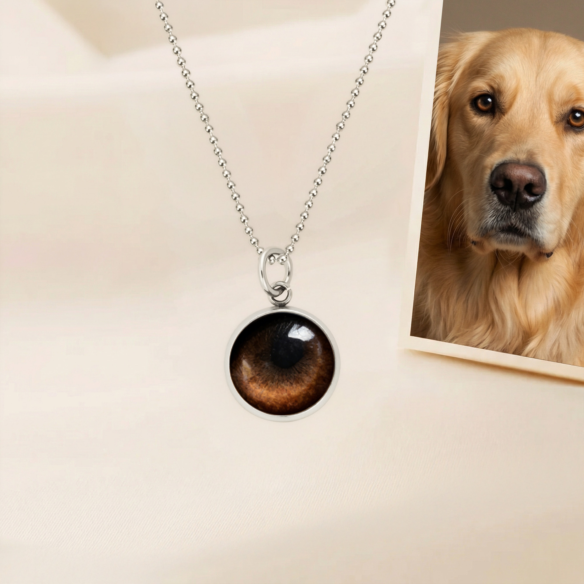 Personalized Pet Eye - Celebrate a one-of-a-kind accessory that reflects your pet's individuality with our custom pet eye necklace. This special piece allows you to showcase a detailed representation of your pet's eyes, beautifully capturing their essence and spirit. Each necklace becomes a meaningful reminder of the bond you share with your furry friend.