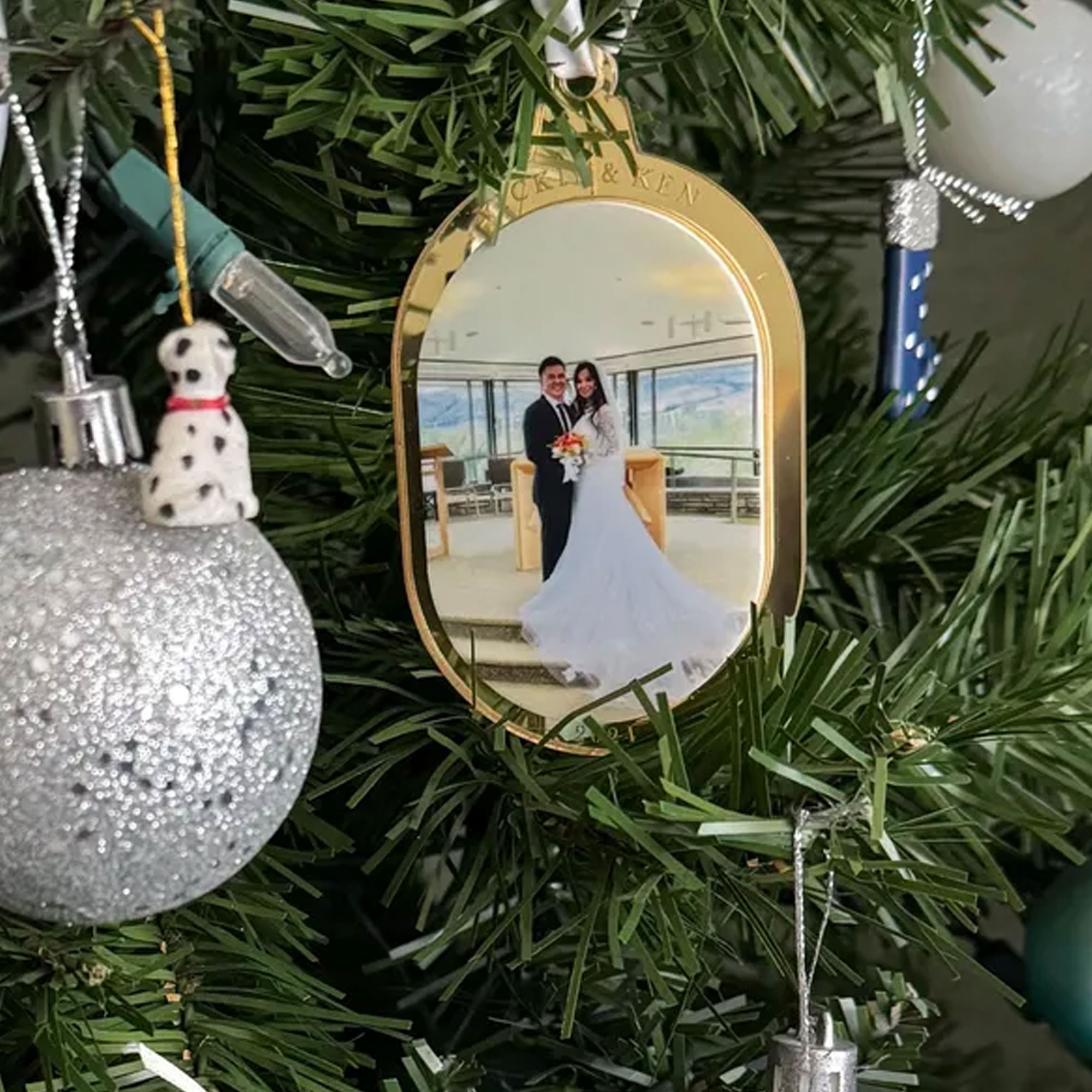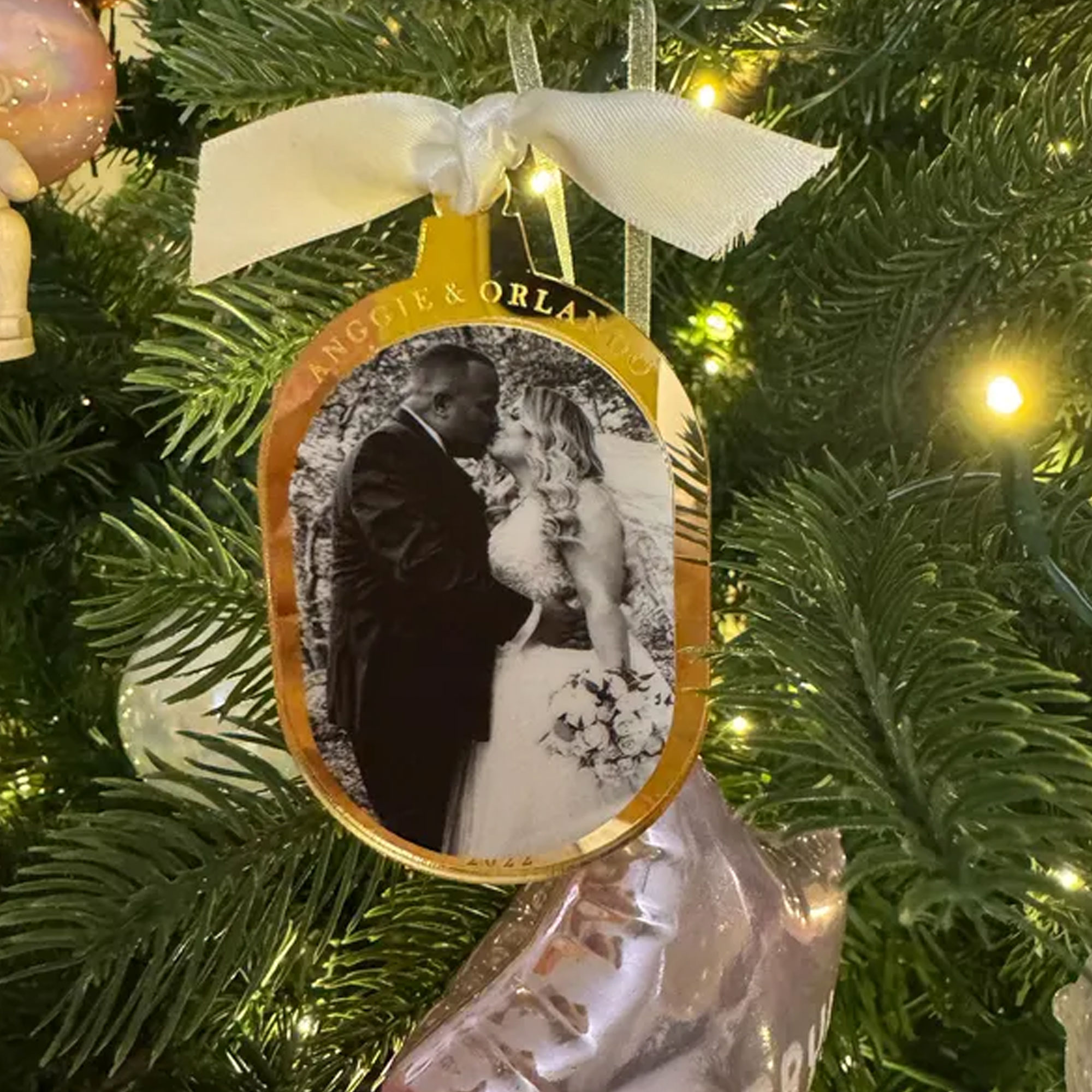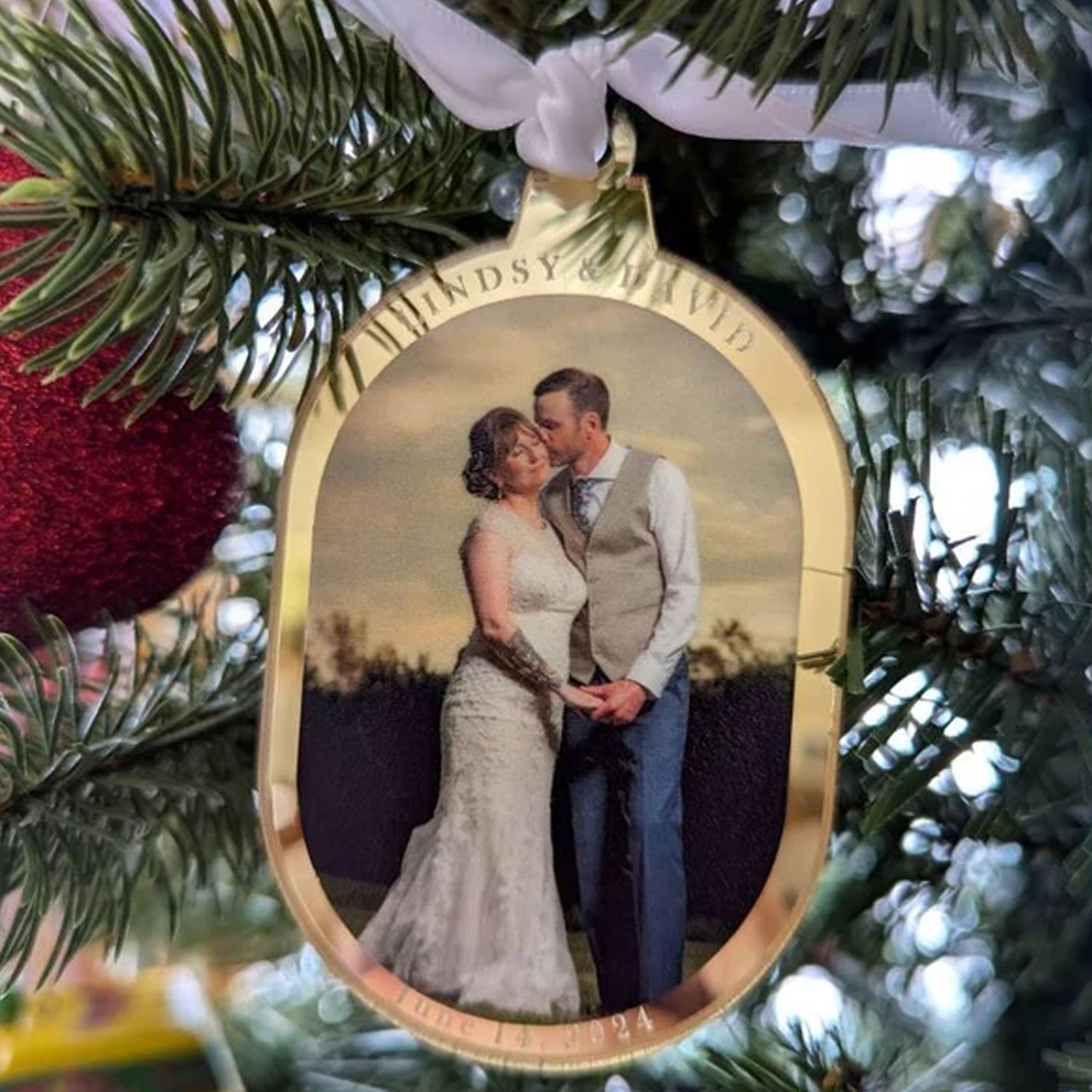 Cherished Keepsake - Celebrate your first Christmas as a married couple with this beautiful personalized photo ornament. It’s a heartfelt way to remember your special day every holiday season.
