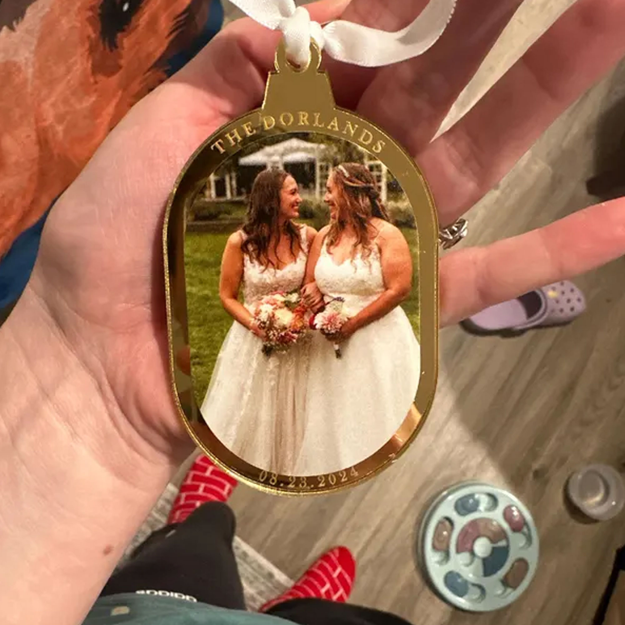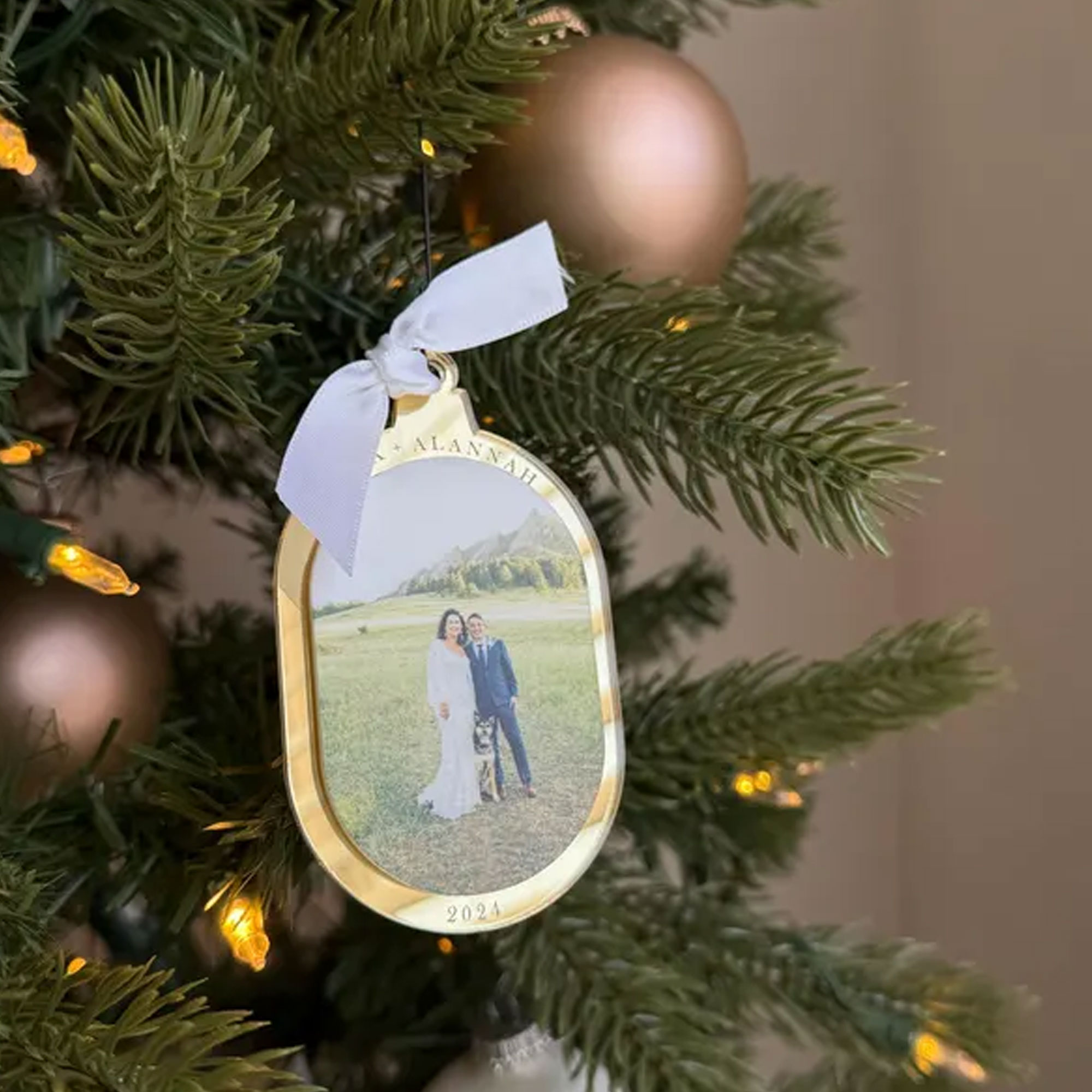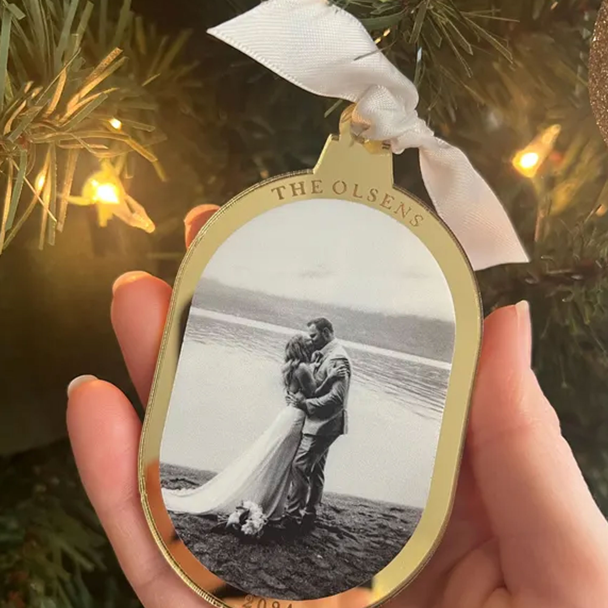 Cherished Keepsake - Celebrate your first Christmas as a married couple with this beautiful personalized photo ornament. It’s a heartfelt way to remember your special day every holiday season.