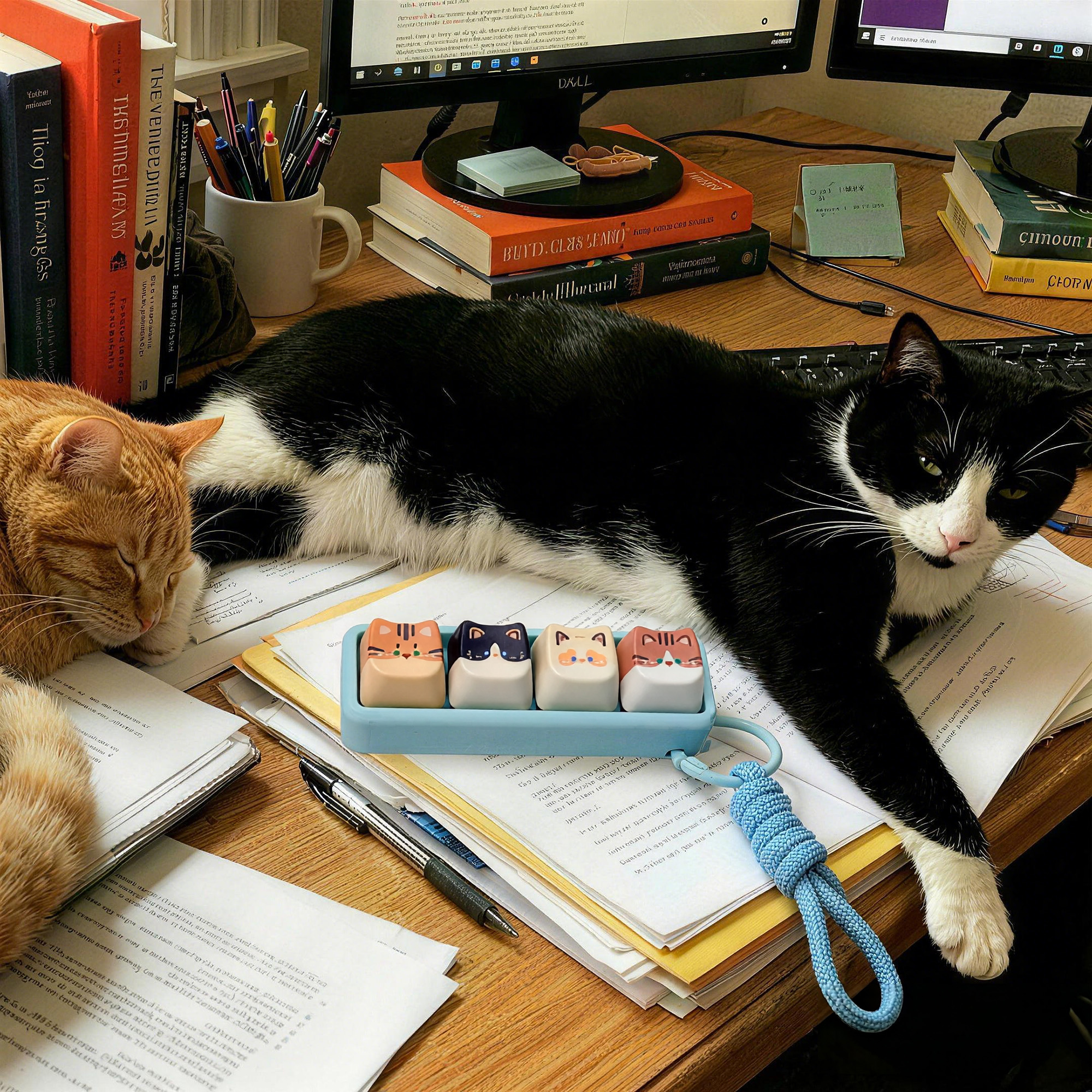 Fully Customizable - Choose your favorite base color, rope strap hue, switch type, and cat face design—from sleepy tabbies to curious calicos—so it feels yours uniquely.