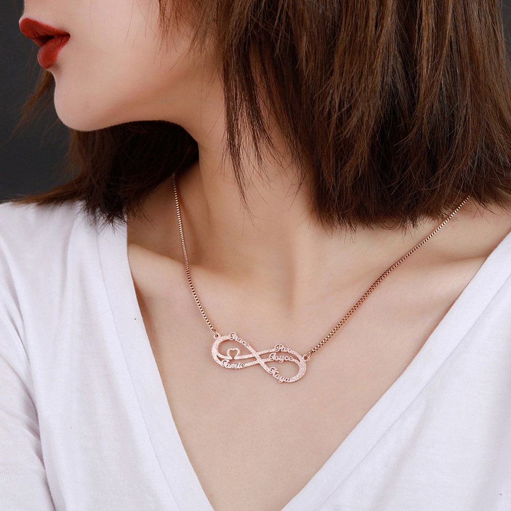 This personalized infinite name necklace is both simple, stylish and elegant in design. With the glitter effect, you can attract more attention and personalize it with multiple names and your favorite colors. The letters will be carefully designed to give you a meaningful and detailed necklace. A great way to treat yourself, or a special gift for a lover, friend, family member or anyone you cherish.