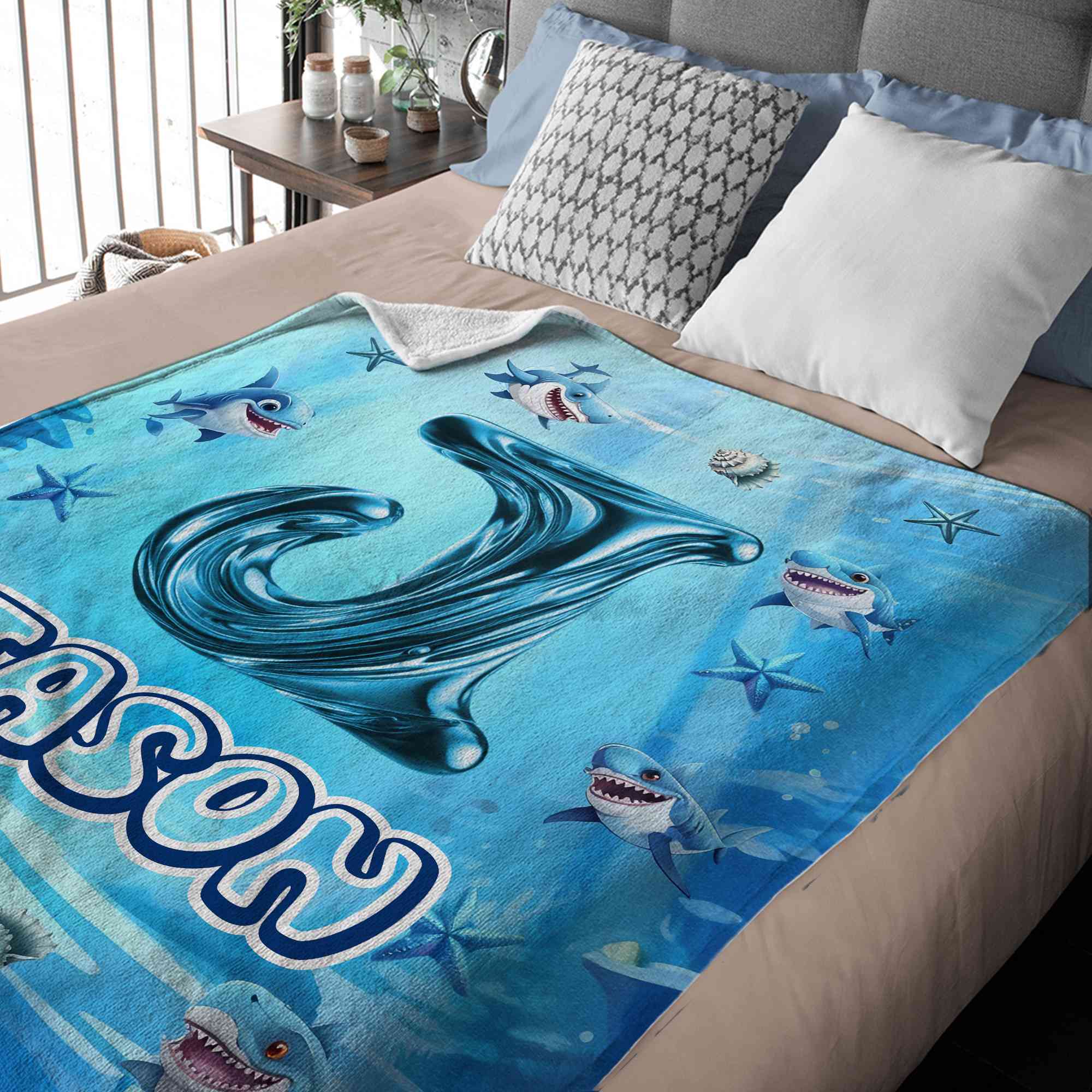 Personalized Touch - Each blanket can be customized with a child’s name and initial, creating a unique piece that feels special and personal. The name blends naturally into the ocean-themed design, making it a one-of-a-kind keepsake for boys and girls.