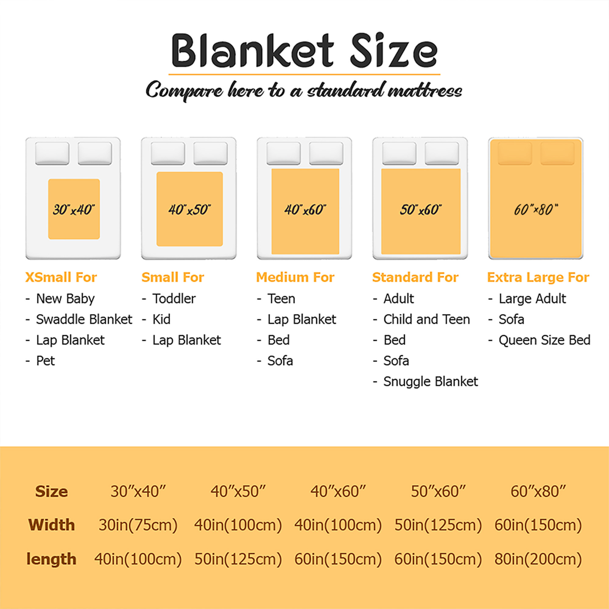 | Measurements | Flannel: 75*100CM(30*40INCH), 100*125CM(40*50INCH), 100*150CM(40*60INCH), 125*150CM(50*60INCH), 150*200CM(60*80INCH); Sherpa: 102*127CM(40*50INCH), 127*153CM(50*60INCH), 153*204CM(60*80INCH) |