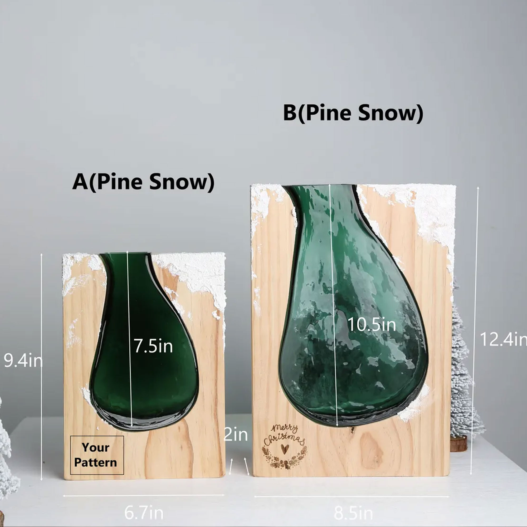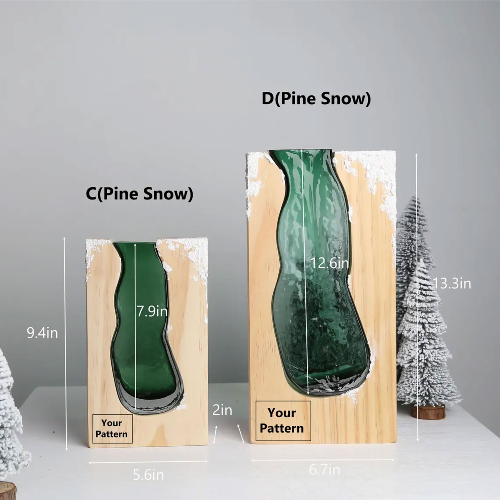 Wood & Glass Vase – A rustic flower holder with a hand-cut glass insert nestled in natural wood. The unique shape and snowy texture create a cozy, seasonal ambiance for any home.