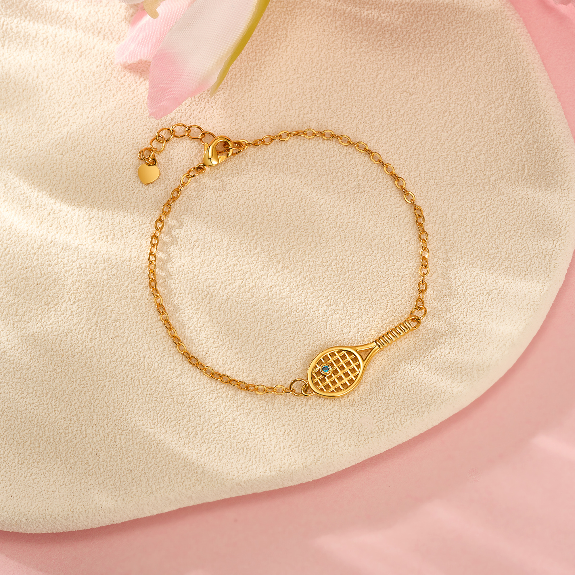 This personalized tennis racket jewelry set combines sports and elegance, bringing a special gift that is both commemorative and beautiful to tennis lovers. Each set includes a necklace, earrings and bracelet, the design is inspired by the exquisite shape of a tennis racket, and can be customized with a special birthstone according to the birthday, giving each piece of jewelry a unique and exclusive symbol.