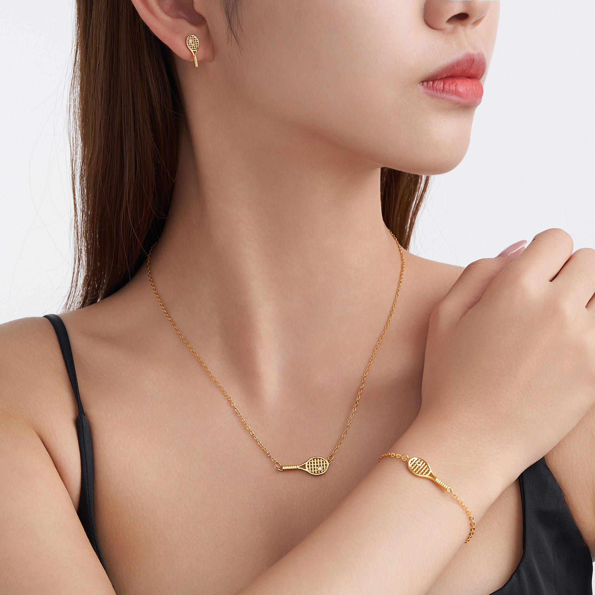 Style Gold Tennis Racket Necklace/Bracelet/Stud Earrings